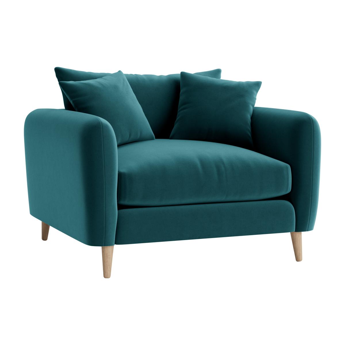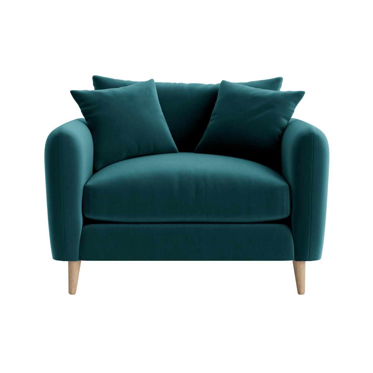 I love this little love seat for its compact, inviting design and rich teal colour, which brings a touch of vibrancy without overpowering a space. It’s versatile enough to sit comfortably in both modern and traditional interiors-think understated minimalism or cosy vintage schemes. Practical styling tips include pairing it with neutral accessories and soft textures to create a relaxed atmosphere, or adding bold cushions to enhance its vibrant tone. Its simple wooden legs ensure it remains lightweight-looking and easy to integrate into various schemes, making it a great choice for smaller living rooms or even a chic nook. Overall, it’s a stylish yet practical piece that can refresh your space without demanding a major makeover.