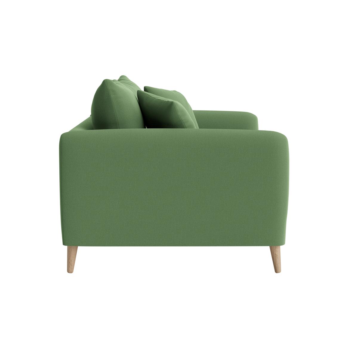 I love the sofa for its modern yet versatile design, which can effortlessly anchor both contemporary and more traditional interiors. The bright green fabric adds a refreshing pop of colour, making it ideal for spaces that could benefit from a lively focal piece. It works well in open-plan living areas or smaller rooms where it can be styled with neutral or patterned cushions to balance the look. Practical styling tips include pairing it with natural textures like wooden side tables or woven rugs to soften its colourful presence. Its tapered legs and clean lines allow it to sit comfortably in various styles, from Scandi to eclectic, making it a flexible and fun addition to your space.