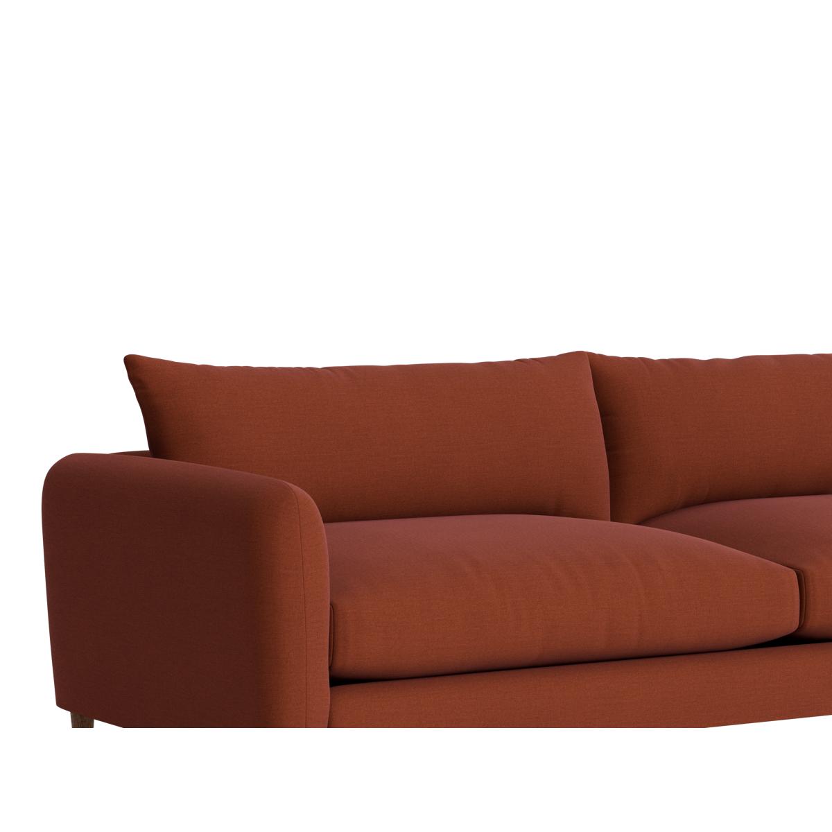 I love this sofa for its inviting, understated style and versatile silhouette. It works well in both contemporary and more traditionally styled interiors, especially those with warm colour palettes or earthy tones. The squishy cushions and plush fabric make it perfect for relaxed living spaces, and its mid-century inspired legs add a touch of understated elegance. Practical styling tips include pairing it with textured throws and a mix of cushions for added visual interest, or placing it against a patterned wallpaper or bold wall colour to make it stand out. For a balanced look, keep surrounding furniture streamlined and consider layering with a cosy rug to anchor the space.