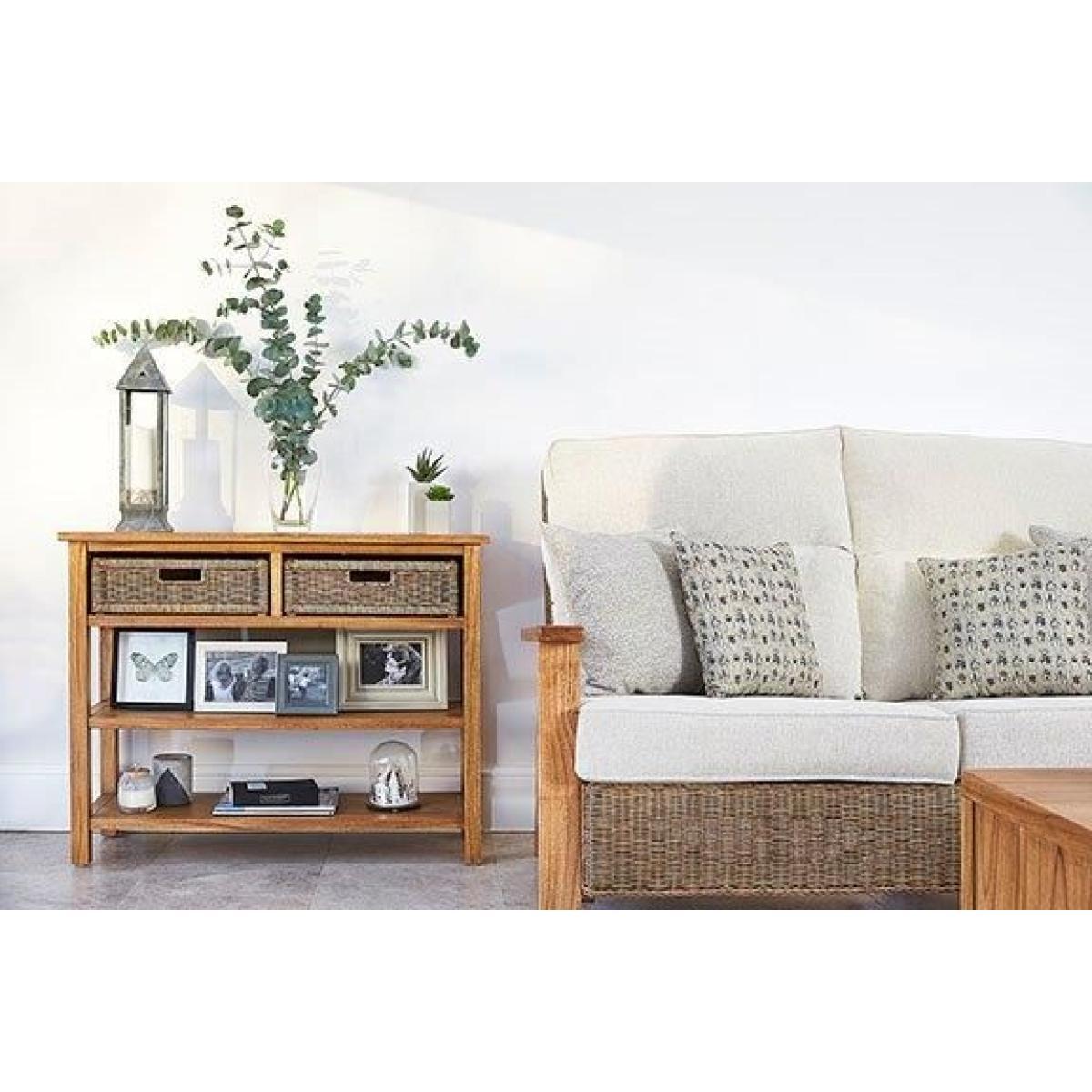 The rich combination of natural wash rattan and Mindi wood makes Alexandra a great choice for your conservatory, orangery or living area. Complementing accessories, like this console table complete the look and offer practical storage solutions.