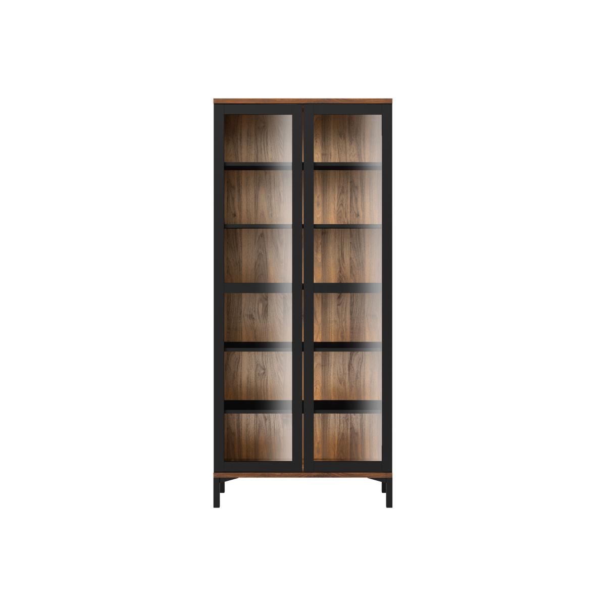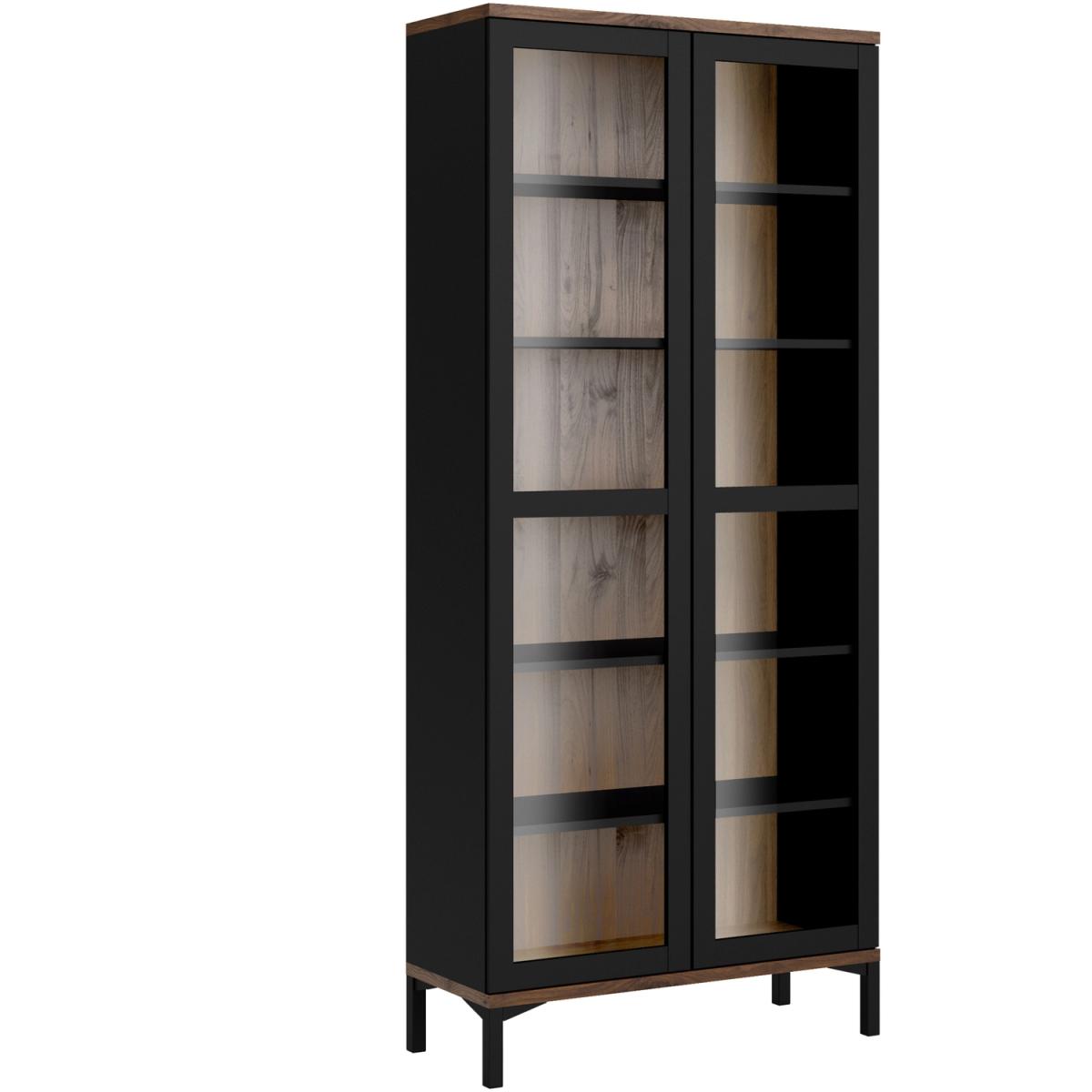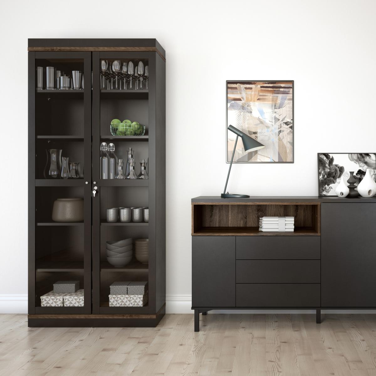 St George's Display Cabinet Glazed Two Doors - Black and Walnut