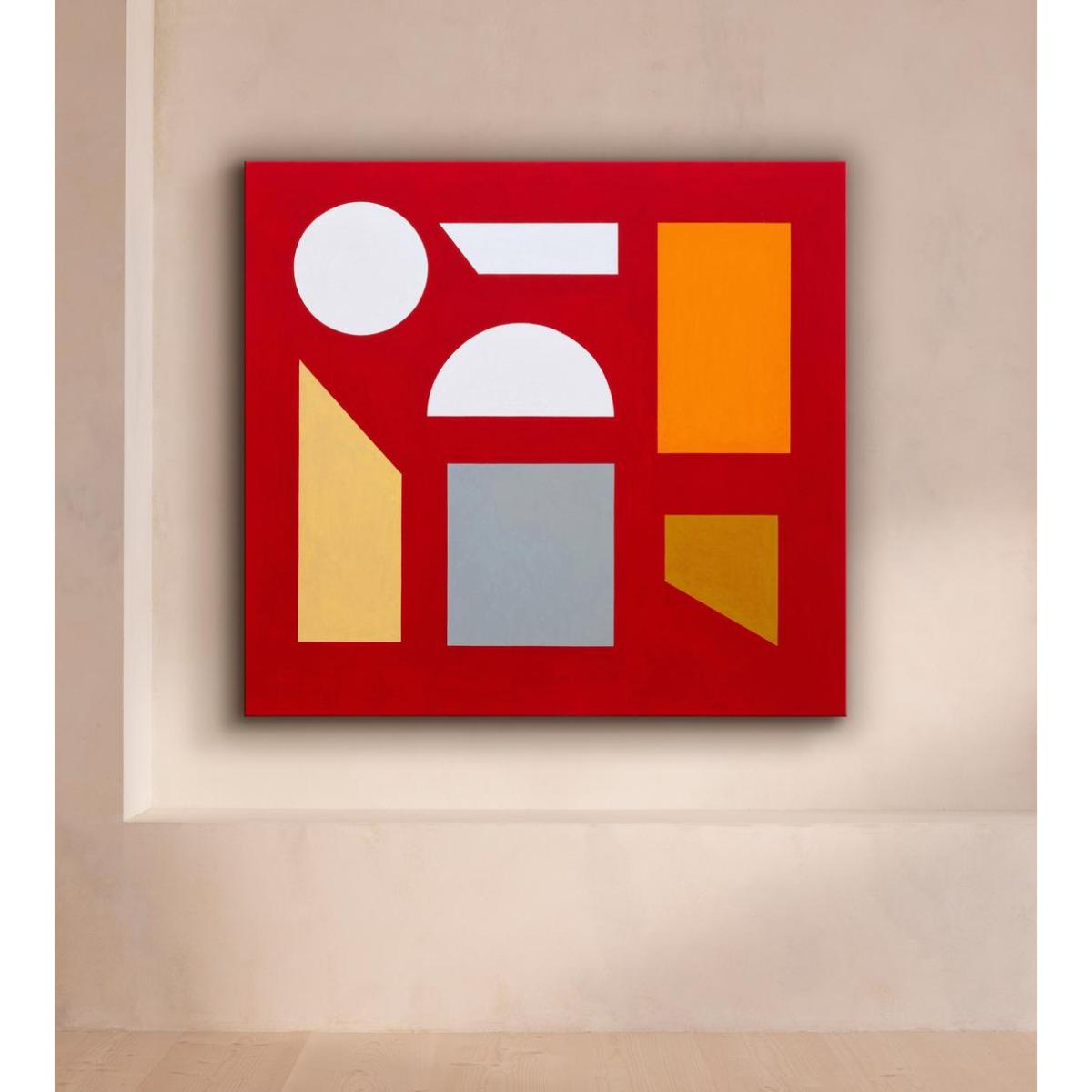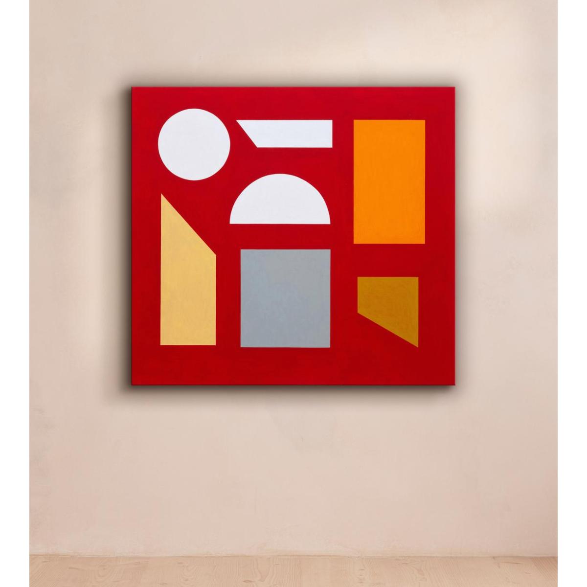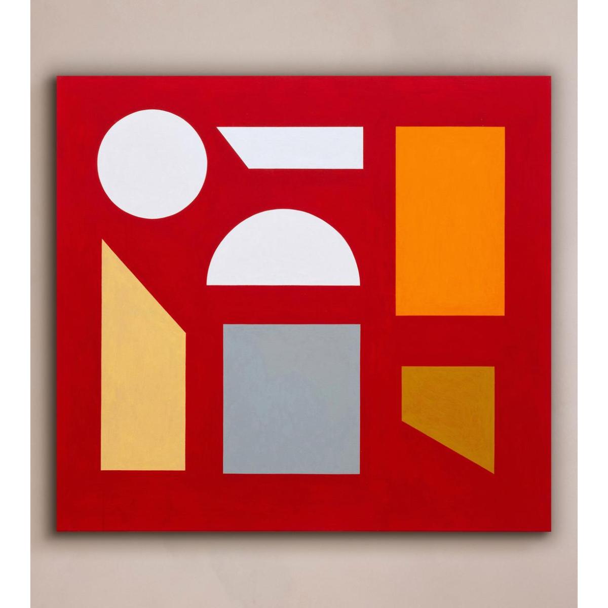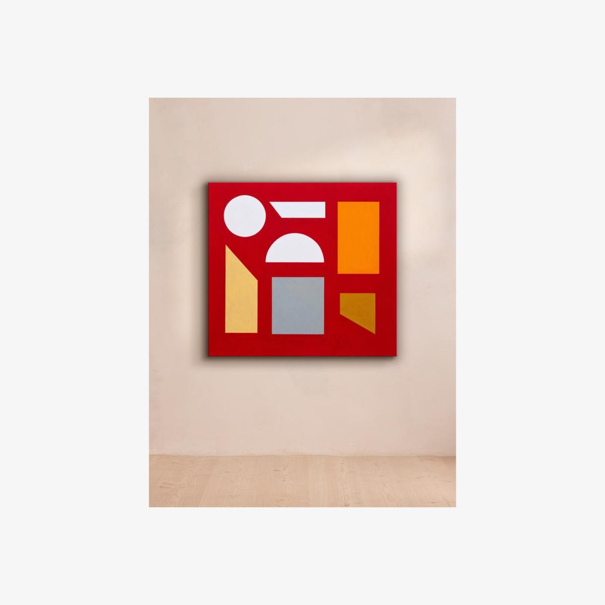 This piece, St. Nicholas of the Roof, really works well in contemporary or eclectic interiors thanks to its bold colours and geometric design. I love how it adds a pop of vibrancy and visual interest without overwhelming a space. It's perfect hung in a living room or hallway to create a focal point, especially when paired with neutral walls and minimalistic furnishings. Practical styling tips include placing it at eye level for maximum impact and considering a simple frame to let the artwork stand out. It also works beautifully as part of a gallery wall, where its vivid red and geometric shapes can complement other modern, colourful pieces.