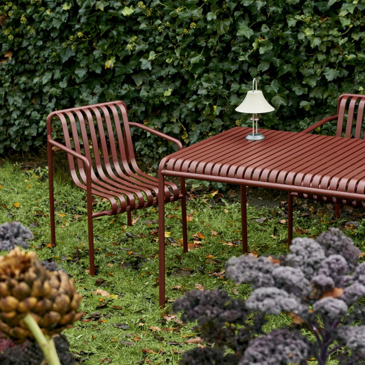 With its clean, graphic design and incredible visual lightness, the Palissade collection bears the unmistakable style of the Bouroullec brothers. Very complete, it consists of thirteen elements: chairs with or without armrests, armchairs with different sizes and levels of comfort, benches, stools, tables... Together, they create a dining or relaxation area in our gardens and on our terraces, as well as in public places. The Palissade is aesthetically very homogeneous and uses round tubes for the structures and legs, coupled with long rectangular strips that make up the seats. Very ergonomically successful, this collection offers excellent sitting comfort, even without a cushion.