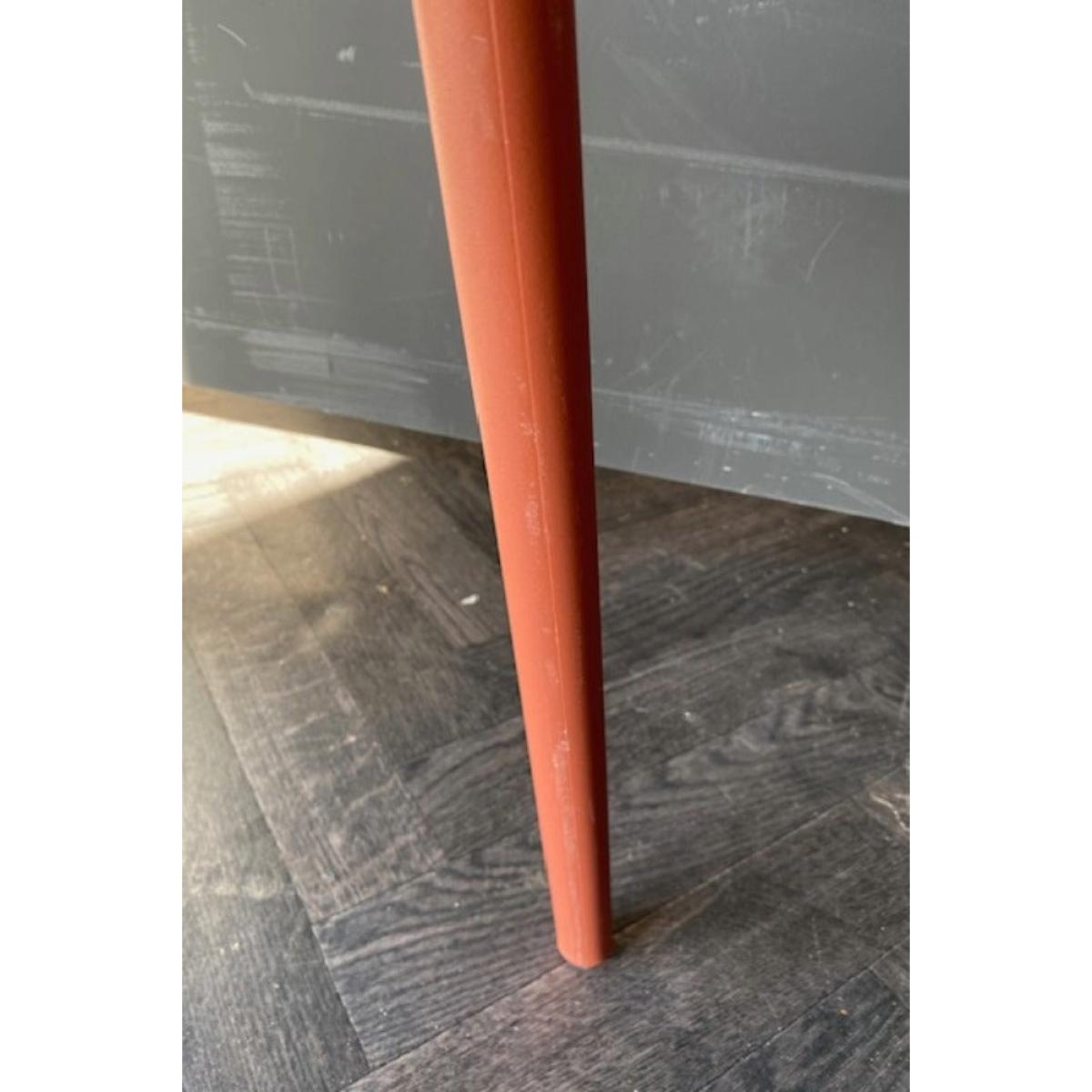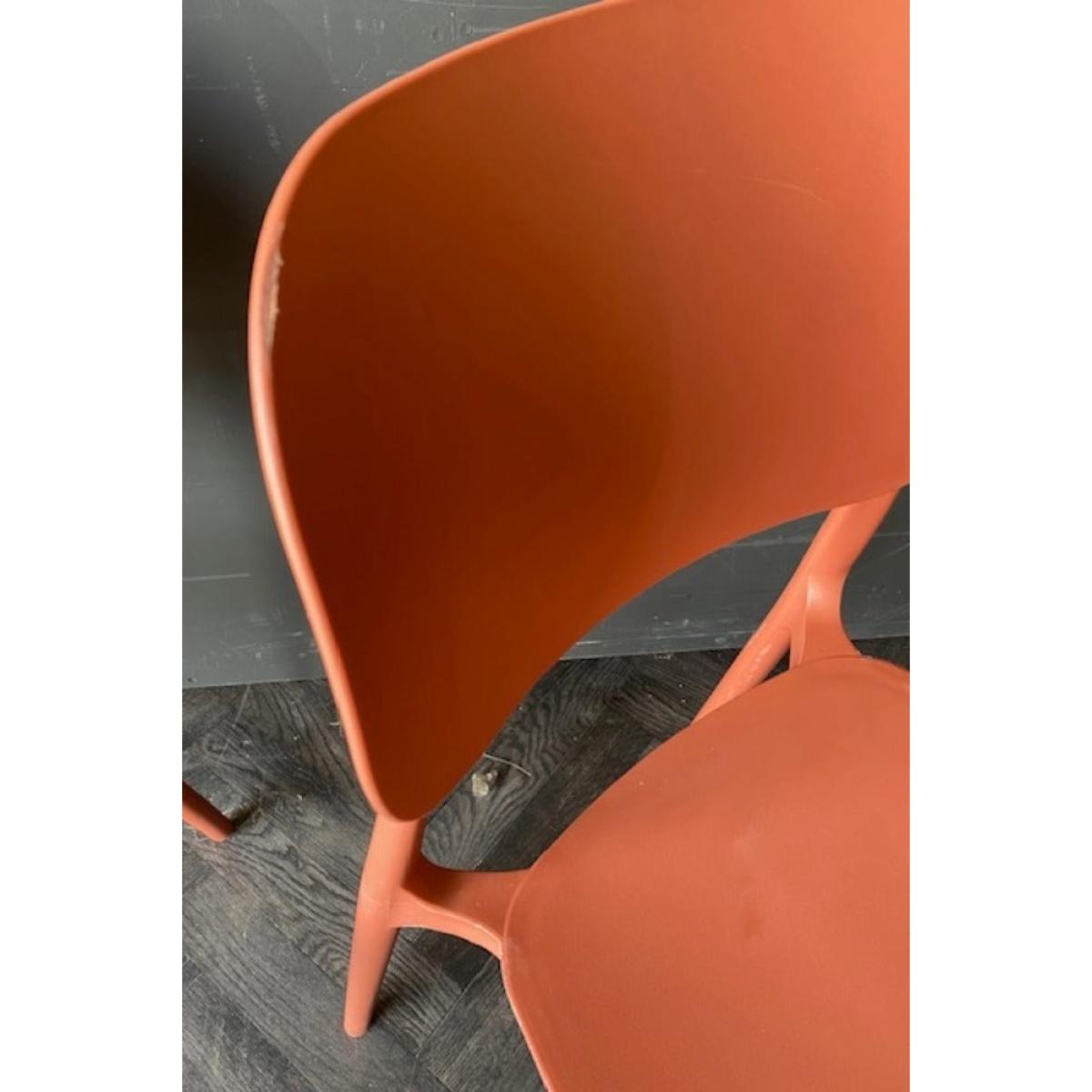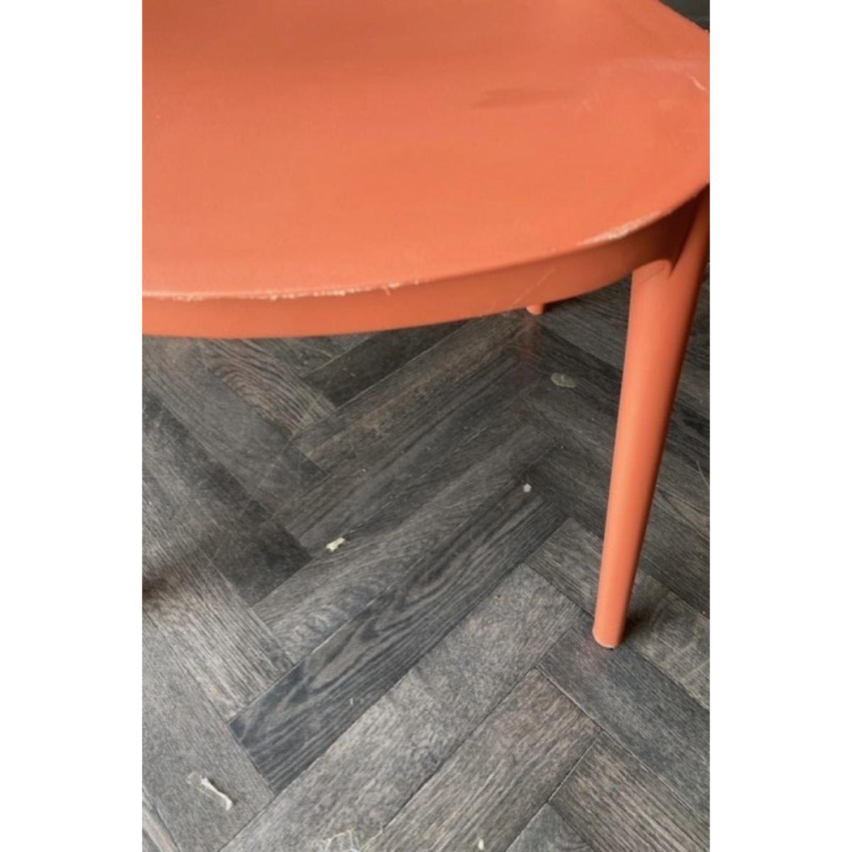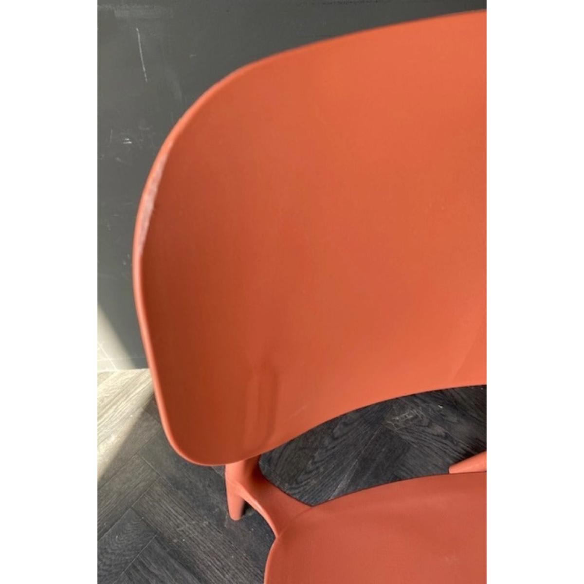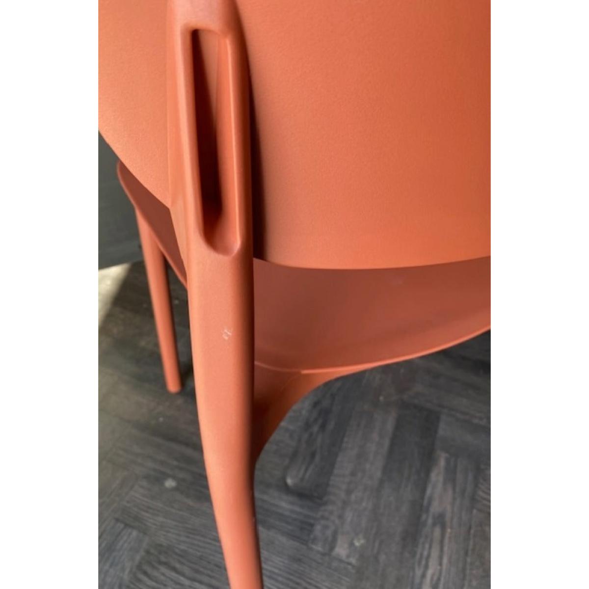 The Stackable Garden Chair in Burnt Orange is designed to bring instant good vibes to your outdoor space. As a SECONDS piece, there are scuffs on the edges of the backrest and seat with scratches to the legs but its sturdy plastic build ensures lasting practicality. The bold burnt orange hue contrasts beautifully with greenery, adding a fresh, uplifting touch to your garden or patio. With its modern design and cut-out backrest for comfort, this chair is perfect for stacking, perching, or lounging al fresco with a drink in hand.- Stackable Garden Chair in Burnt Orange - Measures: W42cm x H81.5cm x D49cm - Material: Polypropylene