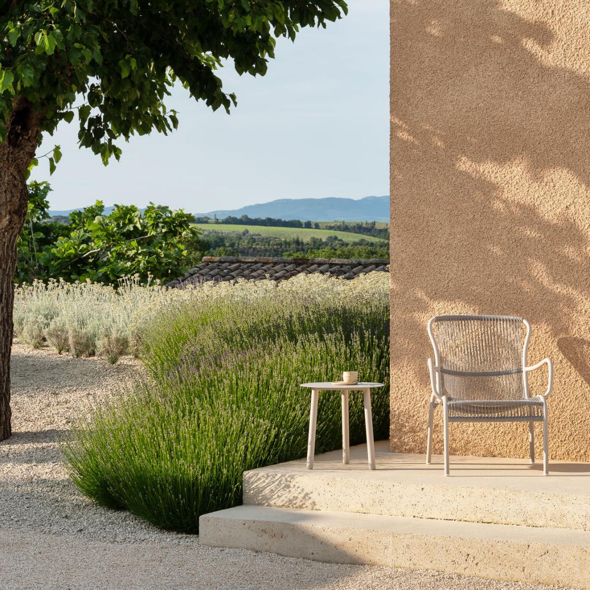 On the edge... The result of meticulous craftsmanship, the Loop lounge armchair brings a retro touch to your terrace or garden. Inspired by the "scoubidou furniture" of the '50s, this lounge armchair is made of polypropylene ropes braided onto a tubular aluminum structure. Airy and graphic, the openwork seat adds visual lightness. Loop combines the minimalist design of its metal structure with the warmth of its hand-woven rope. This rope is resistant to weather and UV rays.