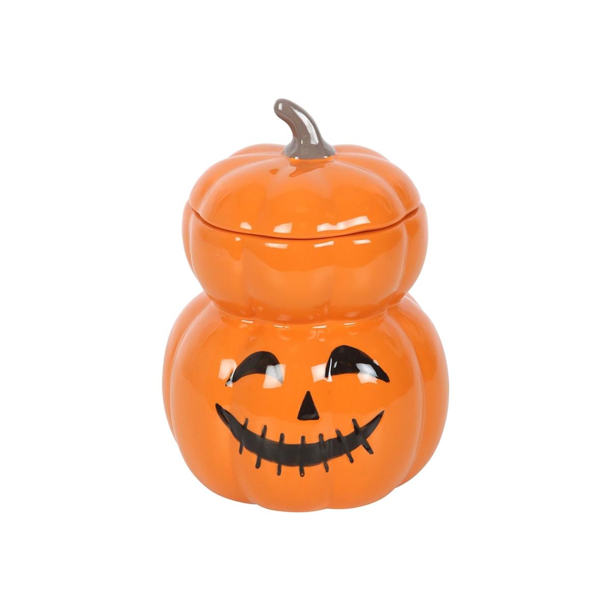 Celebrate Halloween with this charming stacked pumpkin oil burner, ideal for releasing seasonal fragrances into the home whilst illuminating the spooky jack-o'-lantern face with a candlelit glow. A fantastic addition to Halloween decor. Compatible with both diluted fragrance oils and wax melts. Always remove the lid when in use.