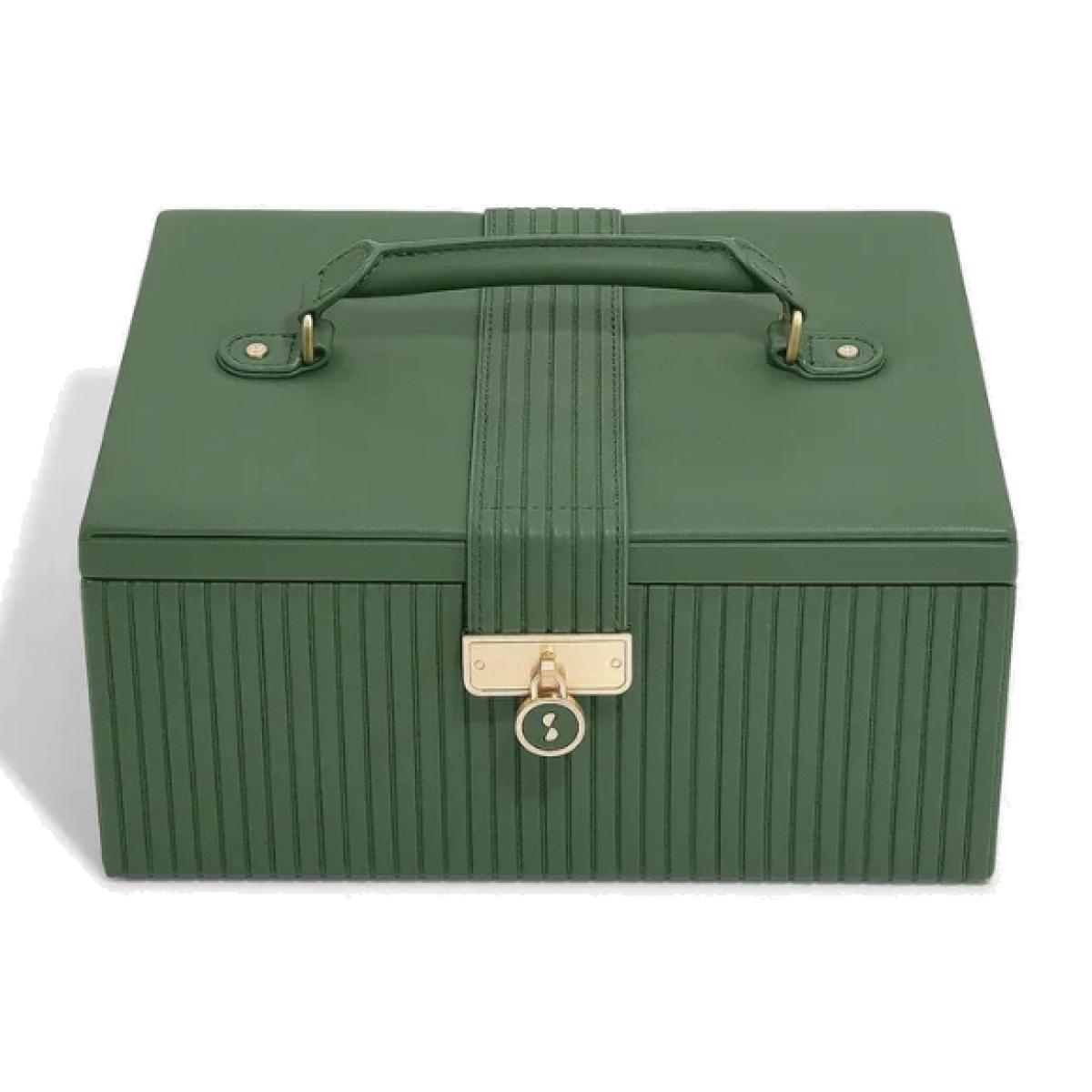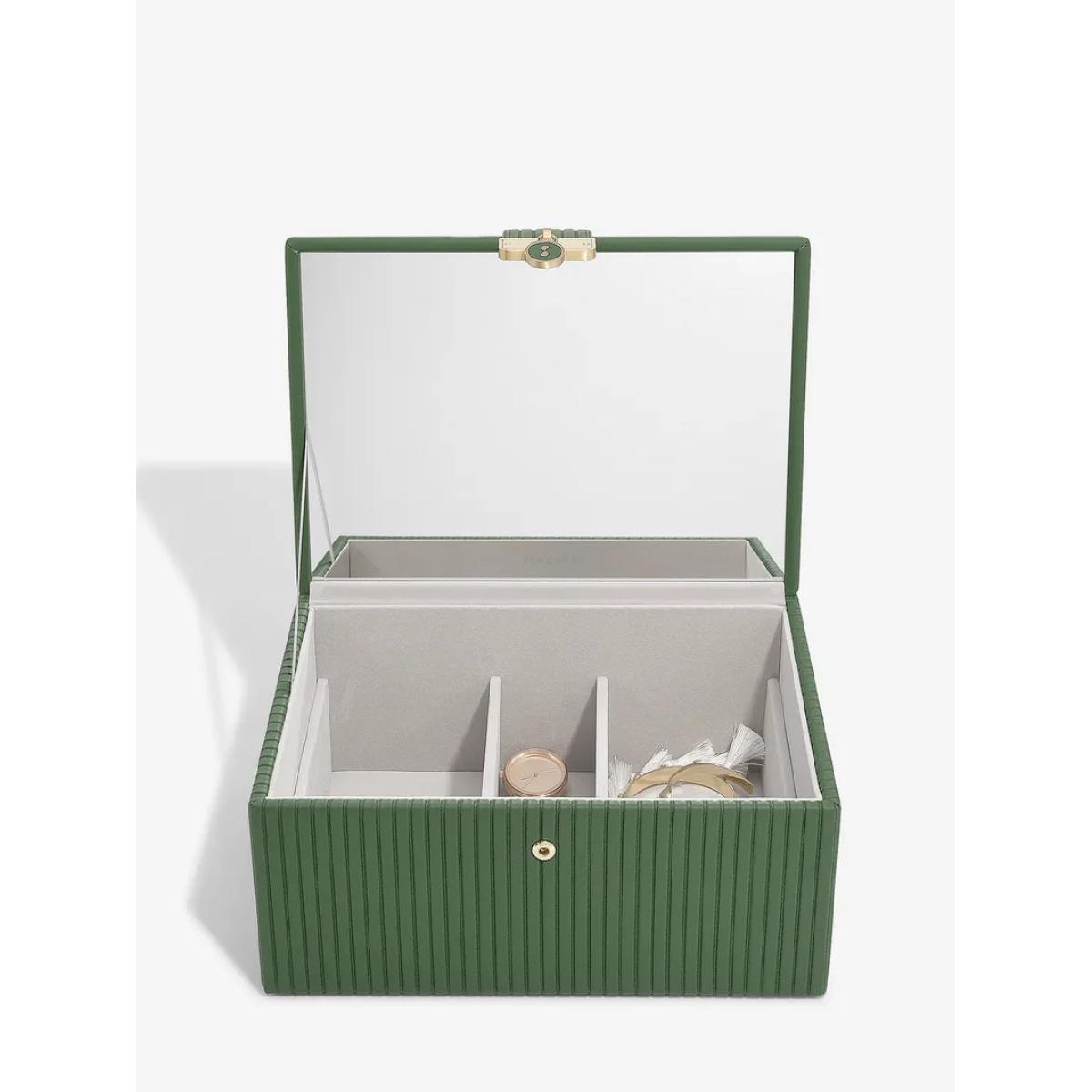 The Stackers Luxury Jewellery Box – Emerald is a stunning addition to your dressing table, designed to keep your jewellery collection beautifully organised and elegantly displayed. Inside, you’ll find a mirror featuring the Stackers logo and thoughtfully arranged compartments to store your necklaces, rings, earrings, watches and more. The top drawer includes a ring roll for rings and earrings, long sections for necklaces, and extra compartments for bracelets or statement pieces. For even more versatility, you can add Stackers accessories such as the pendant necklace holder or earring holder to the drawer. Dimensions: Width: 25cm Depth: 18cm Height: 16.3cm