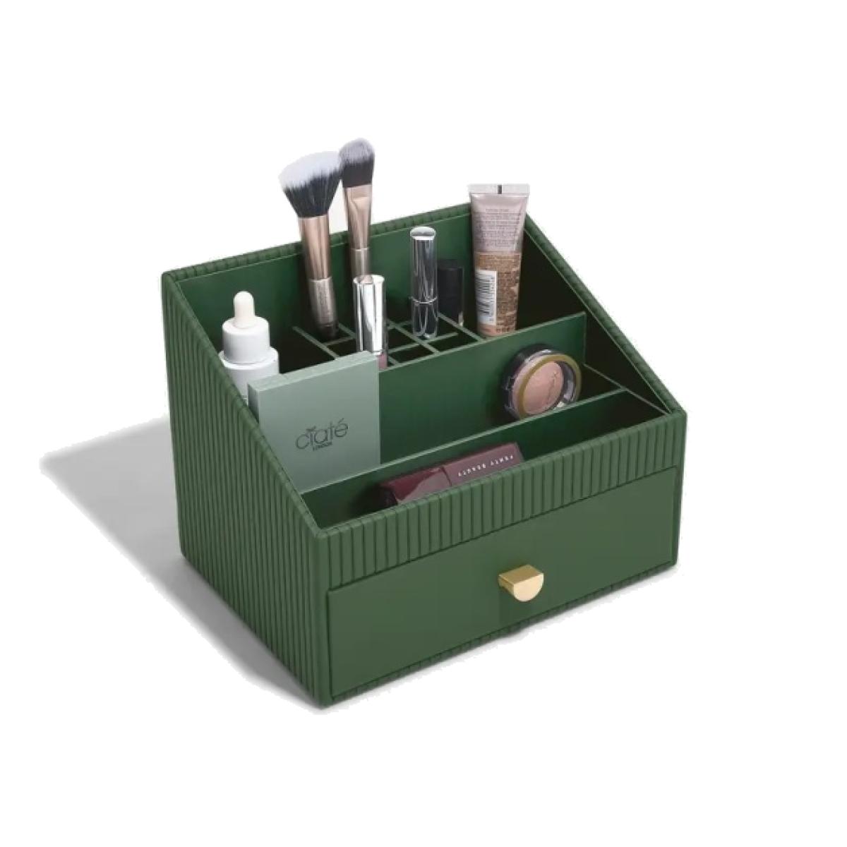 I love this little organiser for its versatility and chic emerald tone-it adds a touch of colour while keeping your beauty essentials tidy. It works well in contemporary or minimalist interiors, especially in dressing rooms, bathroom vanities, or even on a cluttered bedside table. My top styling tip is to use the compartments for different product types-brushes in one, skincare in another-to create a streamlined look. Pairing it with other textured or metallic accents can elevate its aesthetic, making it both functional and decorative. Overall, it’s a practical choice for maintaining order without sacrificing style.