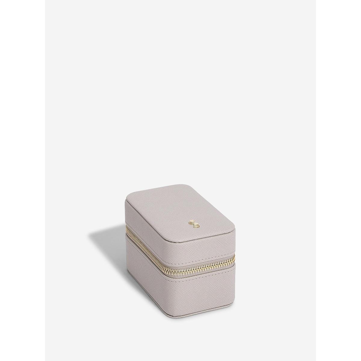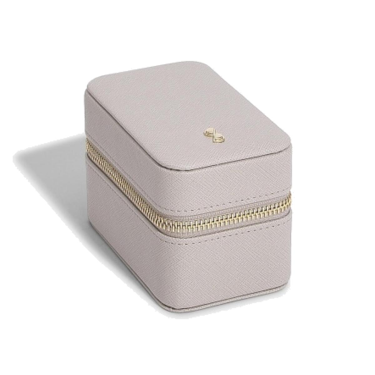 Travel elegantly and keep your treasures protected with the Stackers Travel Jewellery & Watch Box in Taupe. Designed with both style and practicality in mind, this compact zipped box offers the perfect way to store your favourite jewellery pieces and a watch while on the move or at your bedside. Inside, carefully arranged dividers and compartments ensure your items remain secure and tangle-free, while the padded watch section keeps your timepiece safe. The sleek faux leather exterior in a timeless taupe shade pairs beautifully with the soft velvet interior, adding a touch of luxury to your travels. Features: Sophisticated taupe faux leather exterior Soft velvet interior for gentle protection Internal dividers to keep jewellery organised and secure Cushioned watch pad for added safety Compact and travel-friendly design Dimensions: Width: 7.5 cm Height: 8.5 cm Depth: 12.5 cm A refined and practical accessory, perfect for keeping your jewellery and watch safe—whether you’re at home or away. Please note, all screens vary in colour reproduction and whilst every effort has been made to display the colour as accurately as possible it is for guidance only.