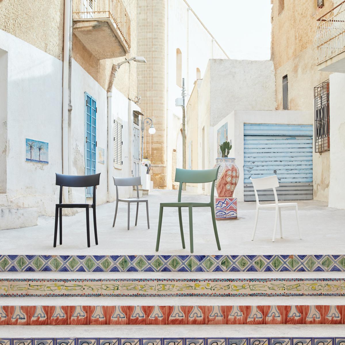 The star of the podiums! The Catwalk chair is the skeleton, the core, the very essence of chairs found at haute couture fashion shows. It has this deeply elegant mystery about it. The Catwalk chair is discreet and humble while being utterly distinguished. The lines have been re-worked delicately, with extreme fluidity. Stackable, light, durable, for use indoors and out, the Catwalk chair can be used in many different contexts, in homes and business alike. "GENERIC": A collection of universal seats according to Philippe Starck. The brilliant French designer was inspired by community chairs. The aim was to identify the "generic" character of seats traditionally used in collective spaces, to offer new and interesting added value, both for homes and local communities. The clear lines are as sleek as possible, to get to the very essence of these seats that are part of the collective memory. Pursuing its technological research, Kartell continues to innovate to select new materials that perform increasingly well and are ever more environmentally friendly. The A.I armchair is made from a 100% recycled thermoplastic technopolymer, made from industrial waste. With this material, Kartell is making new inroads into environmental sustainability, by using recycled materials, while ridding the environment of waste which is turned back into raw materials, therefore triggering a virtuous cycle of the circular economy.