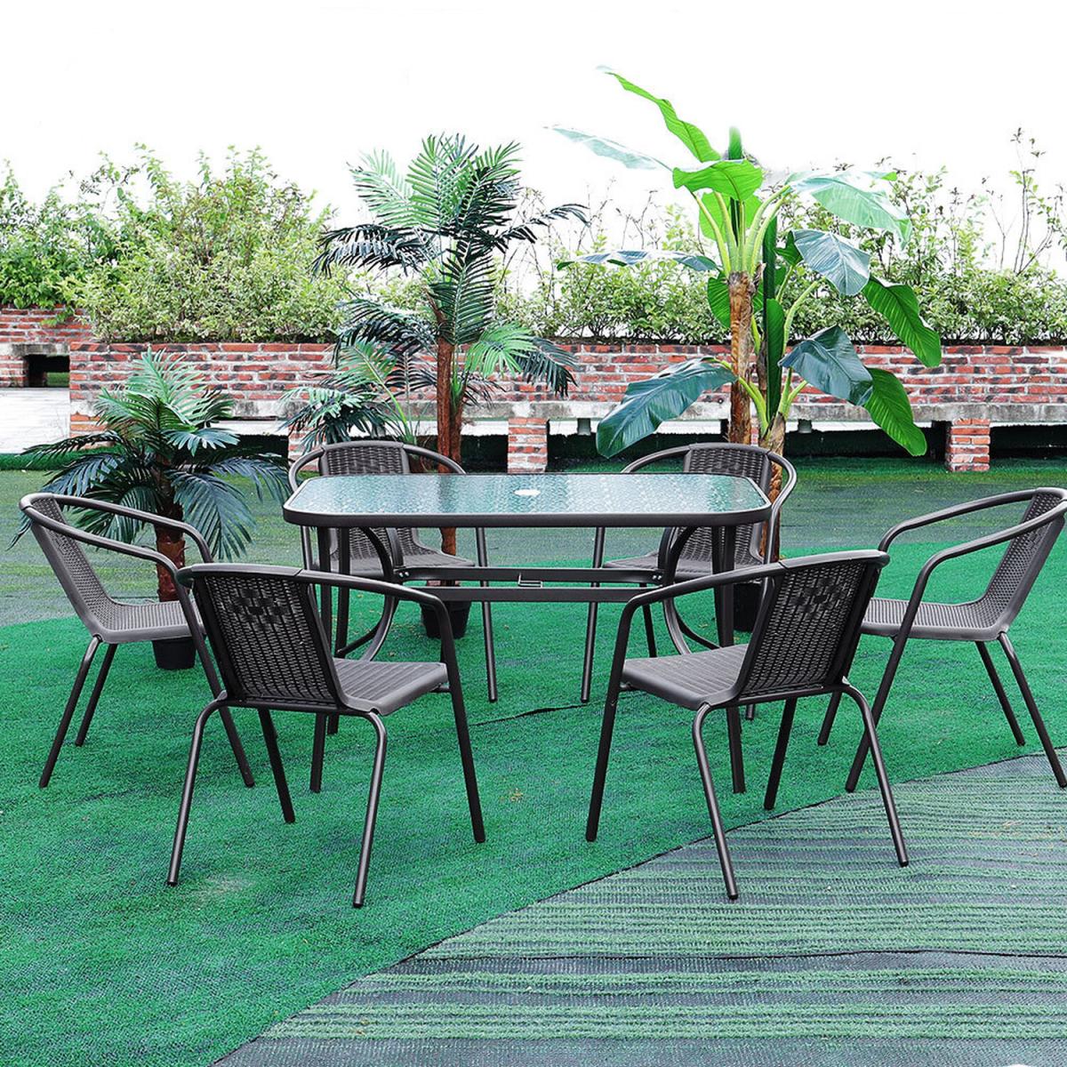 This set of two garden chairs are inspired by vintage style, which can surely add a touch of elegance to your outdoor area. They are made of Plastic, which's the key to its resistance to water, sunlight and corrosion. In addition, they can be stacked to save space when not using. Light yet stable, they are ideal for outdoor furniture.