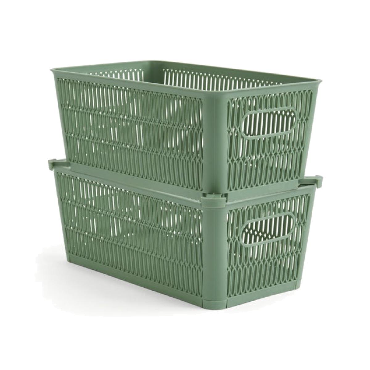 * Available in a range of sizes and colours * Stackable * Slide out corners for stacking Keep your kitchen neat and tidy with these clever Stacking Storage Baskets. Designed with slide-out corners, they stack securely while still giving you easy access to what's inside. The two side handles make them easy to lift and move, whether you're sorting snacks or storing cleaning bits. Nestable when not in use, they're a smart space-saver too. Available in a range of sizes to suit your space. Simple, sturdy, and made to make life easier.