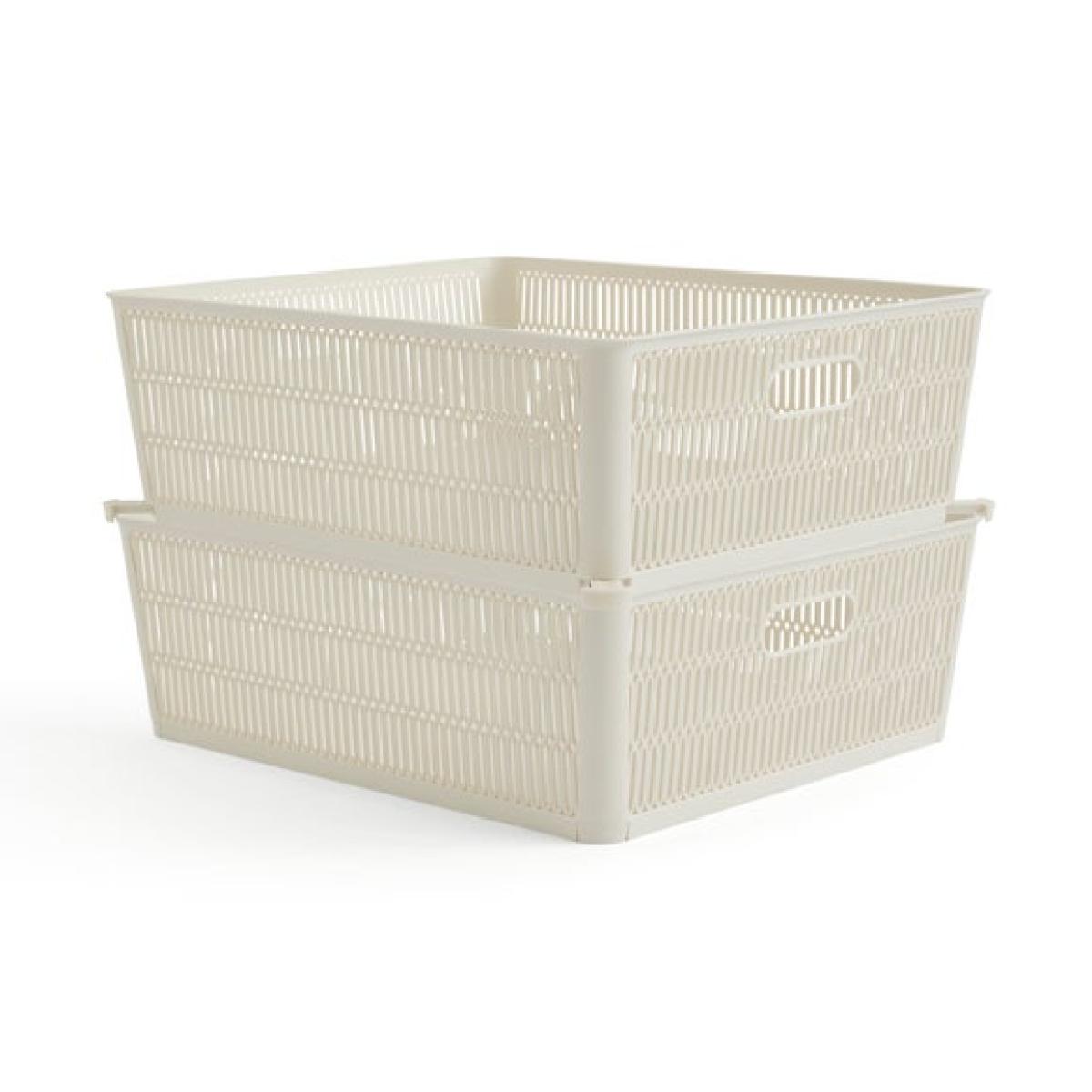 * Available in a range of sizes and colours * Stackable * Slide out corners for stacking Keep your kitchen neat and tidy with these clever Stacking Storage Baskets. Designed with slide-out corners, they stack securely while still giving you easy access to what's inside. The two side handles make them easy to lift and move, whether you're sorting snacks or storing cleaning bits. Nestable when not in use, they're a smart space-saver too. Available in a range of sizes to suit your space. Simple, sturdy, and made to make life easier.