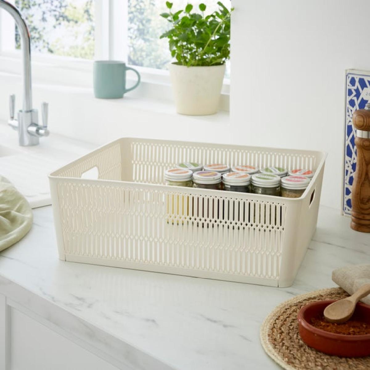 I love these stacking baskets because they offer practical organisation in a variety of kitchen styles, from modern minimal to more rustic or traditional interiors. Their neutral colour and simple design make them versatile, while the stacking feature allows for efficient use of space on kitchen counters or shelves. They work particularly well for storing small items like spices, tea bags, or baking accessories, helping to keep surfaces tidy. For styling, consider grouping them in different heights and pairing with other natural materials like wooden utensils or ceramic jars for a cohesive look. These baskets are a reliable storage solution that combines function with understated style.