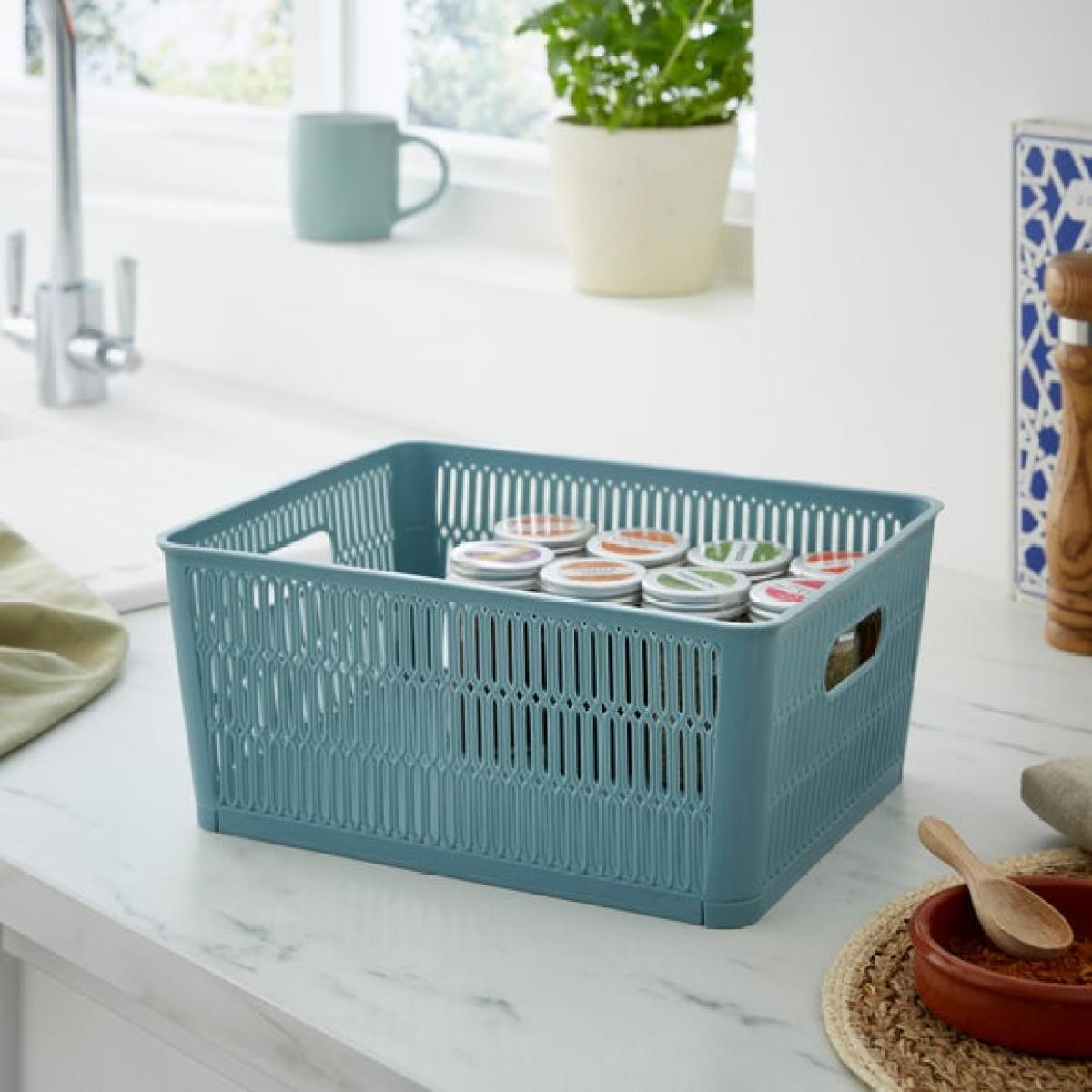 I love these stacking baskets because they offer both practicality and flexibility in organisation. They work well in modern, minimalist kitchens thanks to their clean lines and versatile colour, but can also add a touch of colour to more neutral spaces. They’re perfect for grouping smaller items like spice jars or utensils, easily stacking to optimise space. For styling, consider using them to corral similar items on open shelves or within cupboards, and add a few decorative touches like a small plant nearby to keep the look fresh. They're a smart choice for maintaining a tidy counter while adding a neat pop of colour and texture to your kitchen.