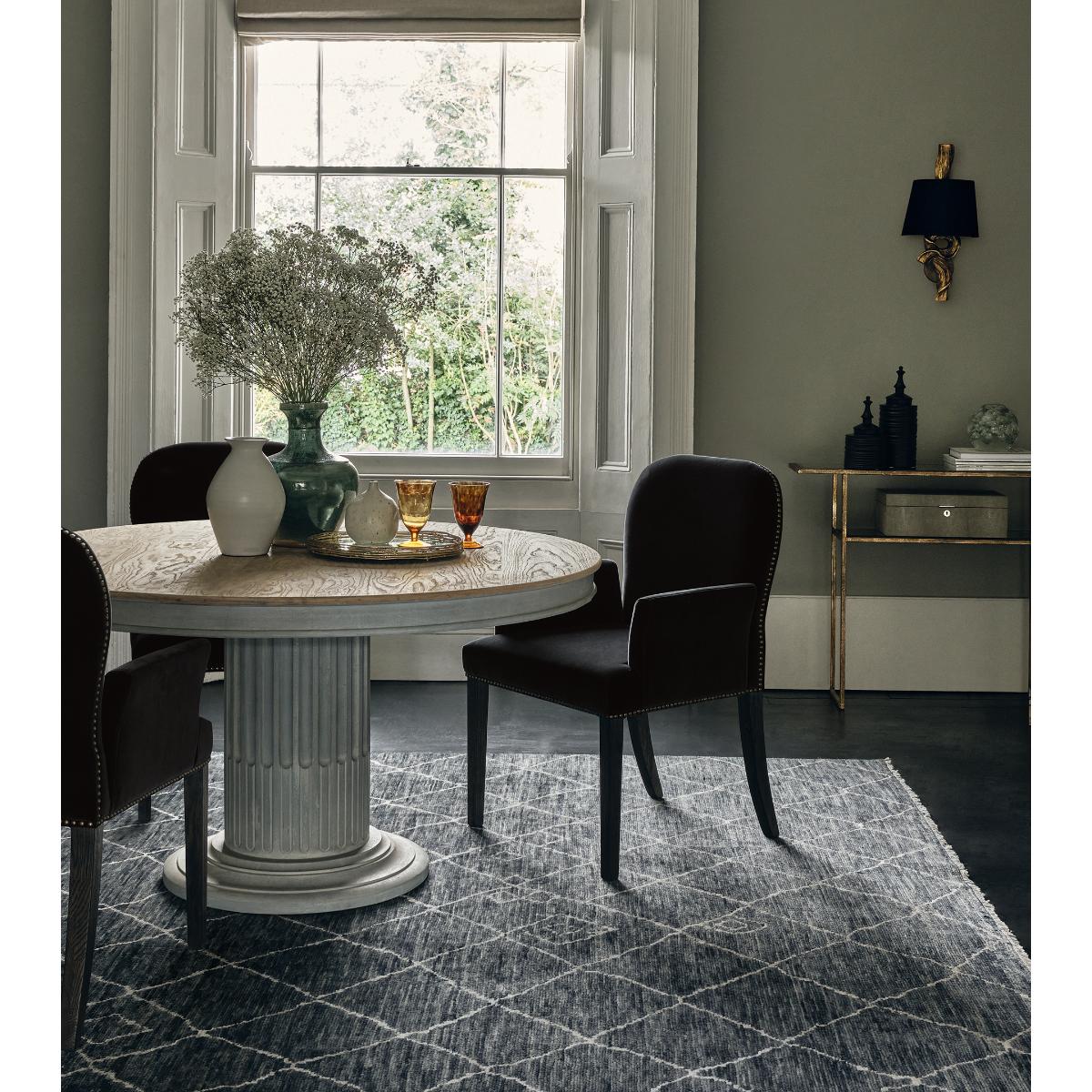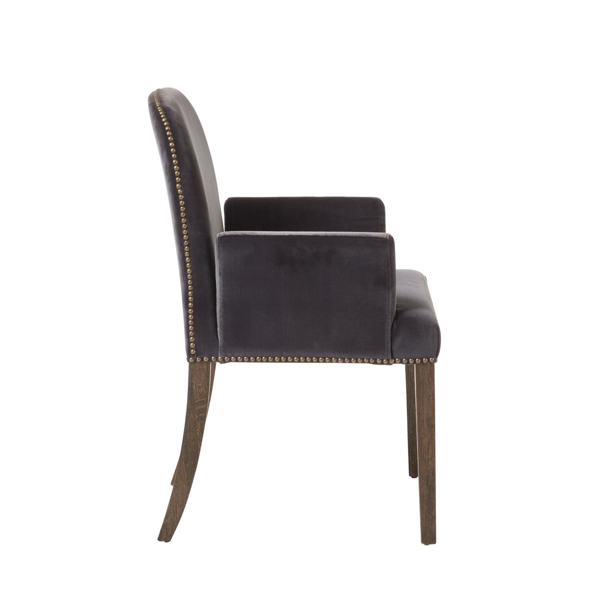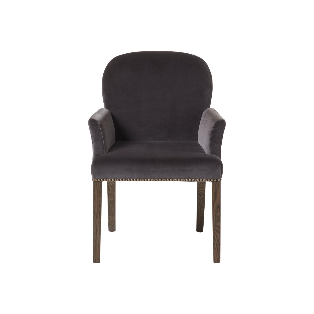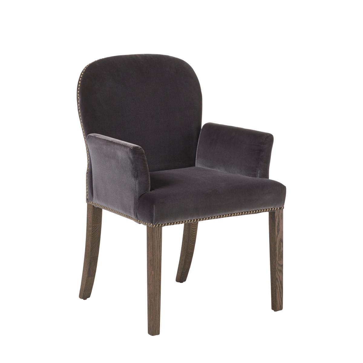 With its sleek, narrow silhouette, studded border and useful back pull, the Stafford Dining Chair strikes a balance between statement and staple. The original seat design – created by OKA Co-Founder Annabel Astor when she was unable to find the perfect dining chair – proved so popular that we continue to add new colours and styles to the collection. One iteration that builds on the first design is this velvet-upholstered dining chair with arms, which offers even more comfort and support via it's stylised armrests.