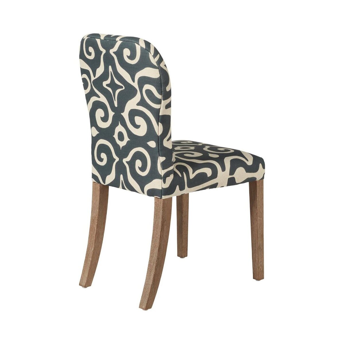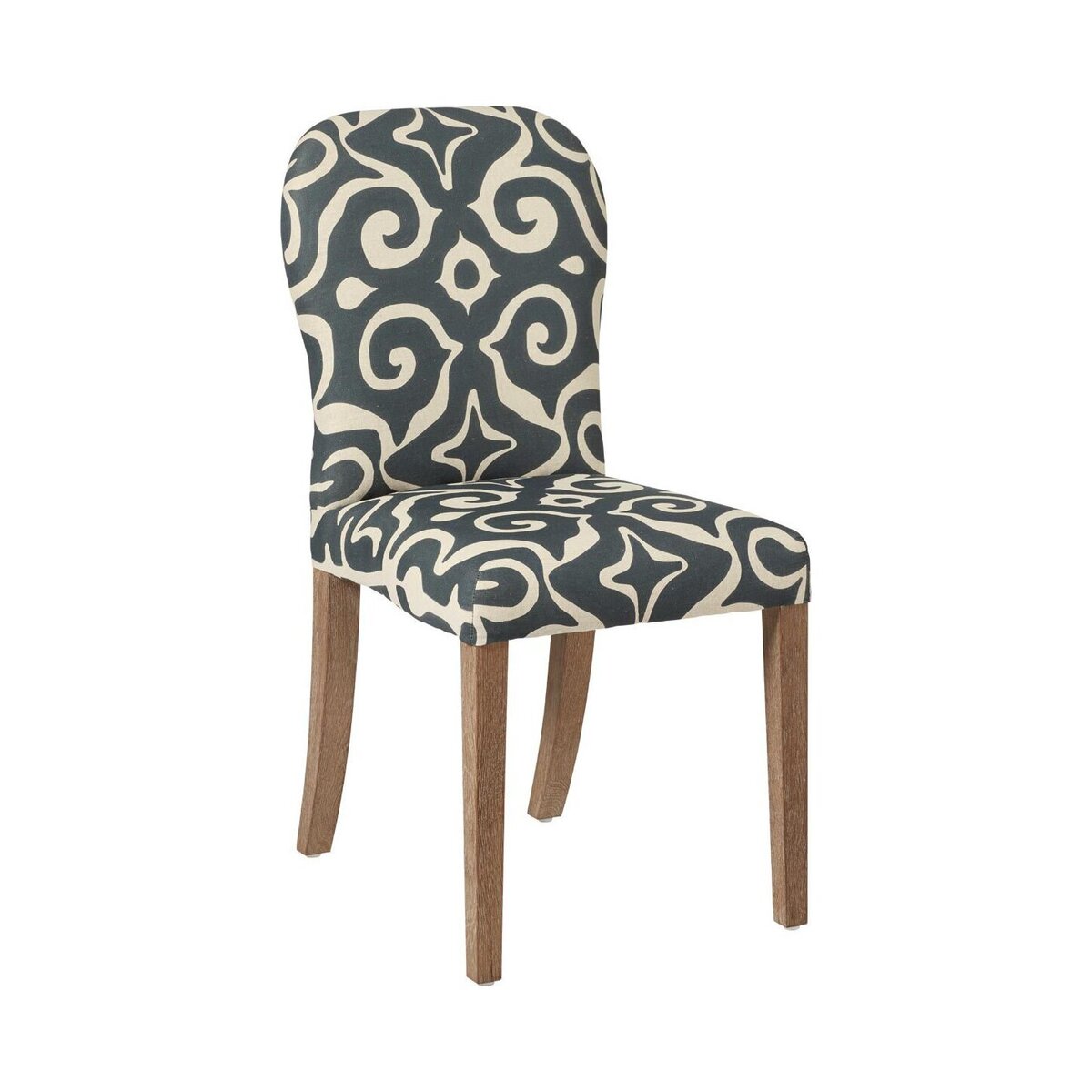 I love this chair for its bold patterned fabric, which makes it a statement piece without overwhelming the space. It's versatile enough to work well in both modern and eclectic interiors, especially when paired with neutral or understated dining tables to let the pattern shine. Practical styling tips include using it to add visual interest around a wooden or glass table, and keeping other textiles in the room subdued to avoid clashing. Its comfortable padded seat and supportive back make it suitable for lengthy dinners, while the wooden legs ensure a warm, natural touch. Overall, it’s a great option for adding personality to a dining area without sacrificing comfort.