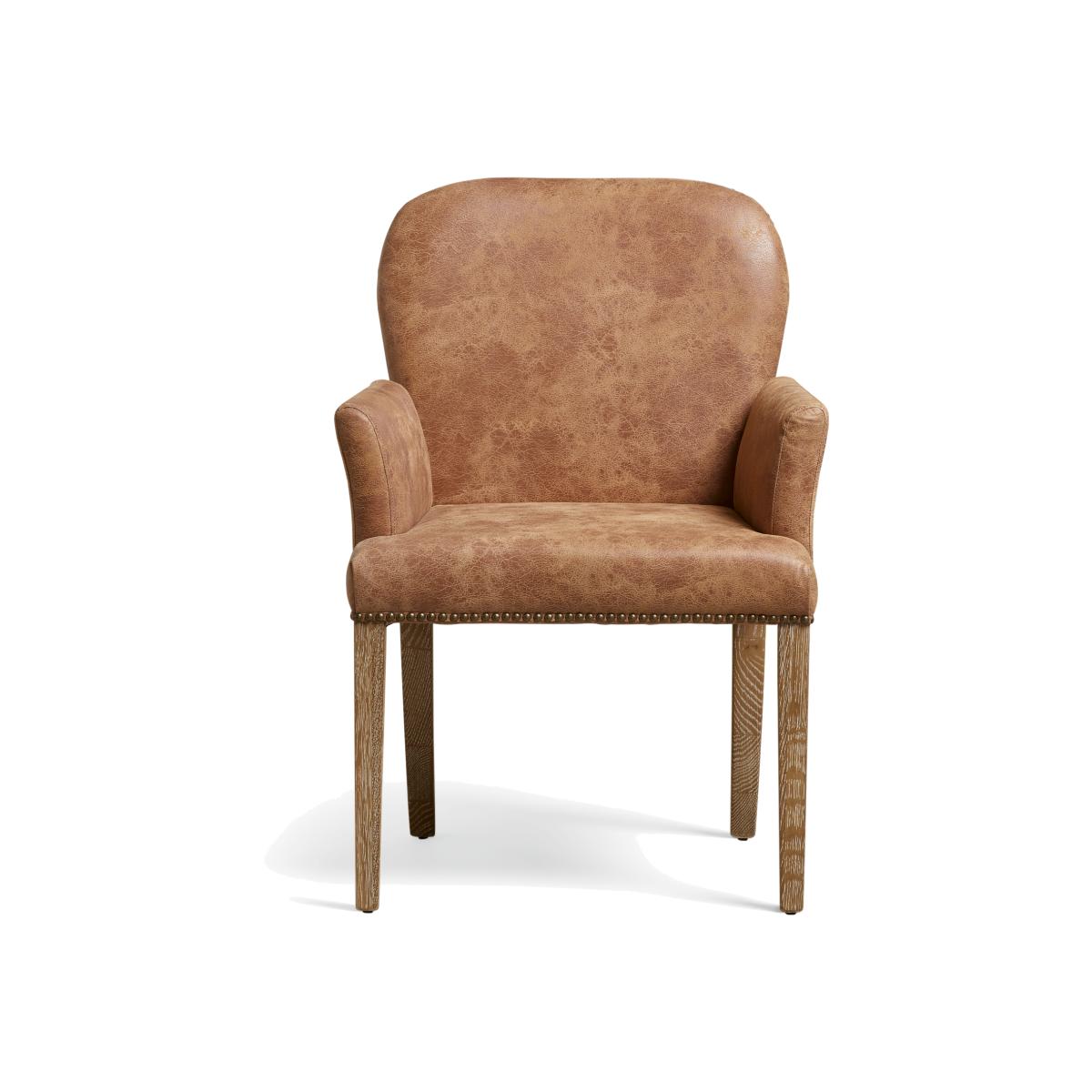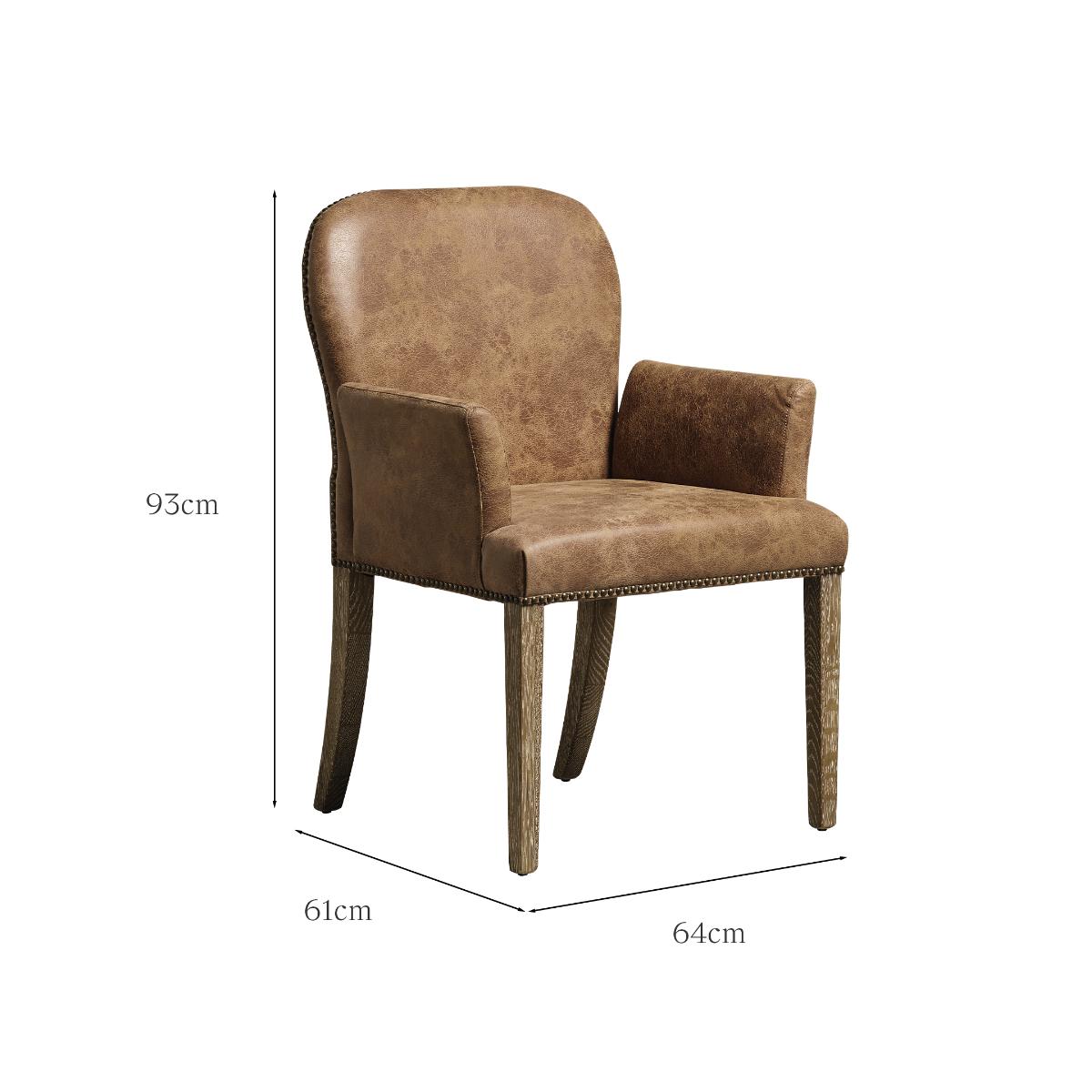 I love the aged tobacco finish on this armchair because it adds warmth and character, making it a versatile choice for both traditional and contemporary interiors. It works particularly well in informal dining spaces, country-inspired kitchens, or even as occasional seating in a lounge area. To style it effectively, pair with natural materials like linen or wool textiles, and consider layering with textured cushions to soften its leather’s reputation for durability. For a cohesive look, combine with wooden or metal dining tables to create a comfortable, inviting atmosphere that balances rustic charm with modern elegance.