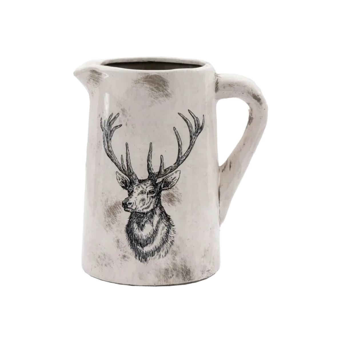 I love how this stag pitcher brings a rustic, Scandinavian vibe to a space, making it perfect for both modern and farmhouse-inspired interiors. Its distressed white and grey finish gives it a tactile, worn-in look that adds character without feeling overly polished. It works particularly well as a stand-alone accent on a mantle or shelf, but you can also fill it with dried foliage, wildflowers, or even use it as a unique drinks pitcher. For styling tips, pair it with natural textures like linen or jute and keep the surrounding decor simple to let the piece stand out - it’s equally charming in a cosy living room corner or a relaxed dining setting.