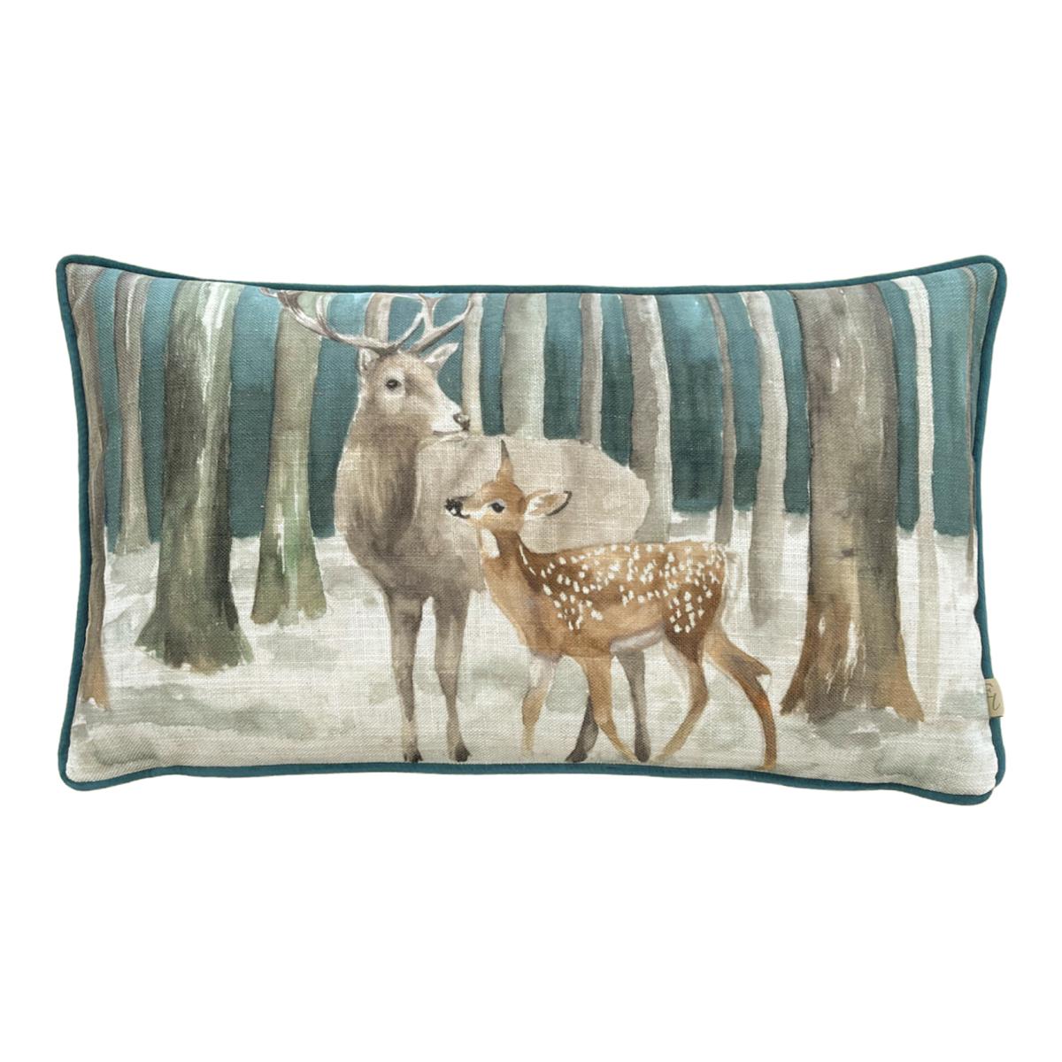 A stunningly designed seasonal cushion which features a hand painted watercolour printed deer with fawn in a snowy forest. Printed on poly-linen fabric, with a contrasting soft velvet reverse, piped trim and zip fastening. A wonderful seasonal cushion to adorn your soft furnishings during the winter months.