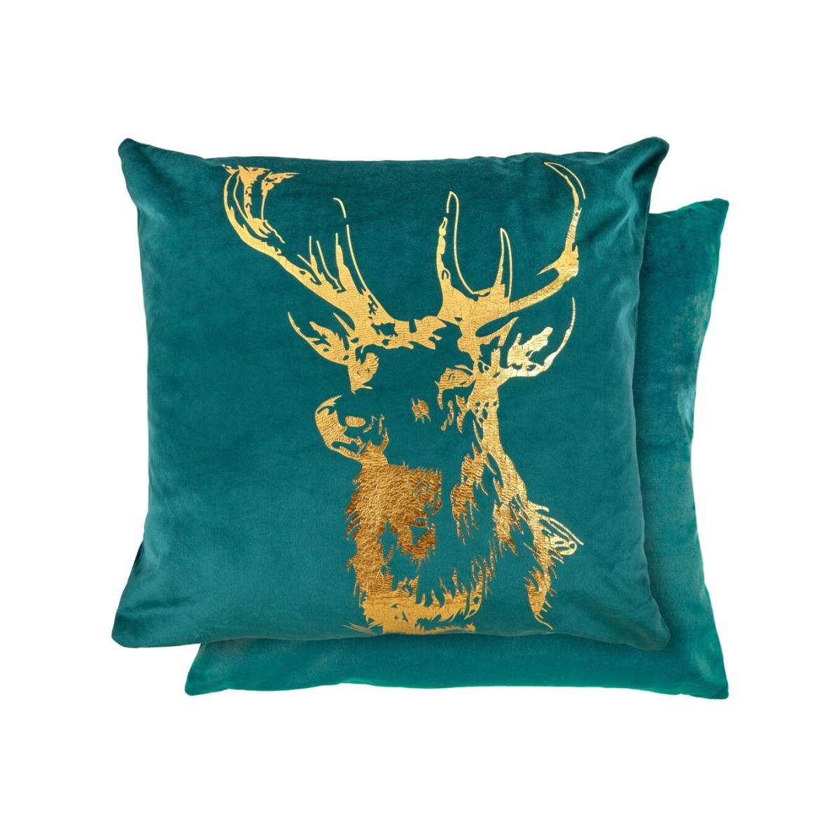 Stag Velvet Soft Plush with Foil Print Cushion Cover - Evergreen