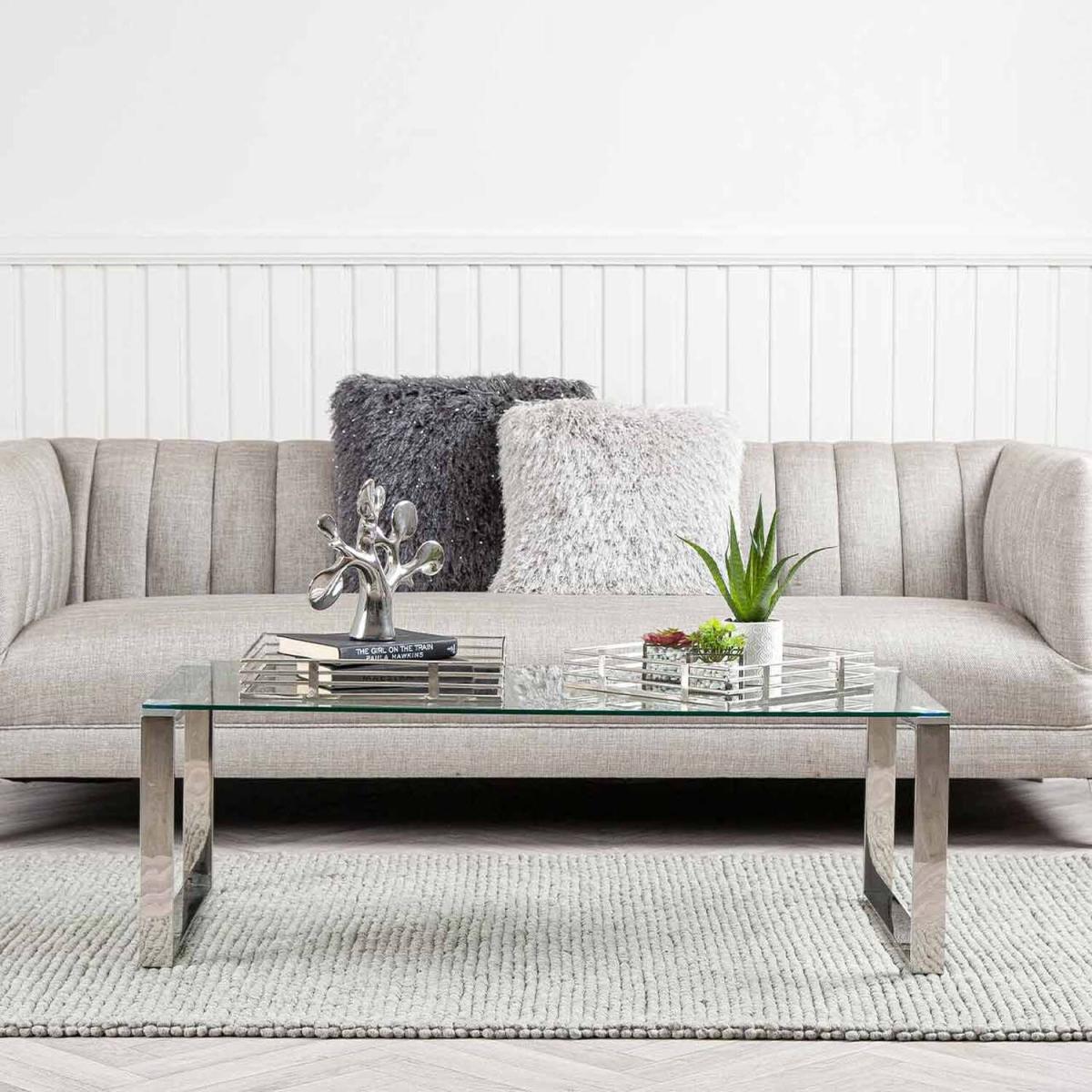 The sleek, elegant design of the Harry coffee table will complement any modern home decor style. Its design works particularly well in formal living rooms, but it may also be used in more casual settings to give a sense of elegance. Its clear top is made of tempered glass, making it scratch-resistant and resistant to minor impacts. Because the glass is non-porous, it is simple to clean with a moist towel. For an even more beautiful appearance, the frame of this stainless-steel coffee table has a stylish, polished surface.