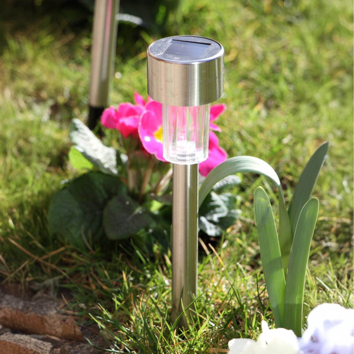 This stylish set of solar powered border lights will really change the way you see your garden. Made of stainless steel for a longer-lasting lamp, these solar powered lights are just the thing to give your garden or patio some much needed light, with the added quality of being easy to reposition at a moment's notice. Stainless Steel Outdoor Solar Border Garden Path Lights - White / 6