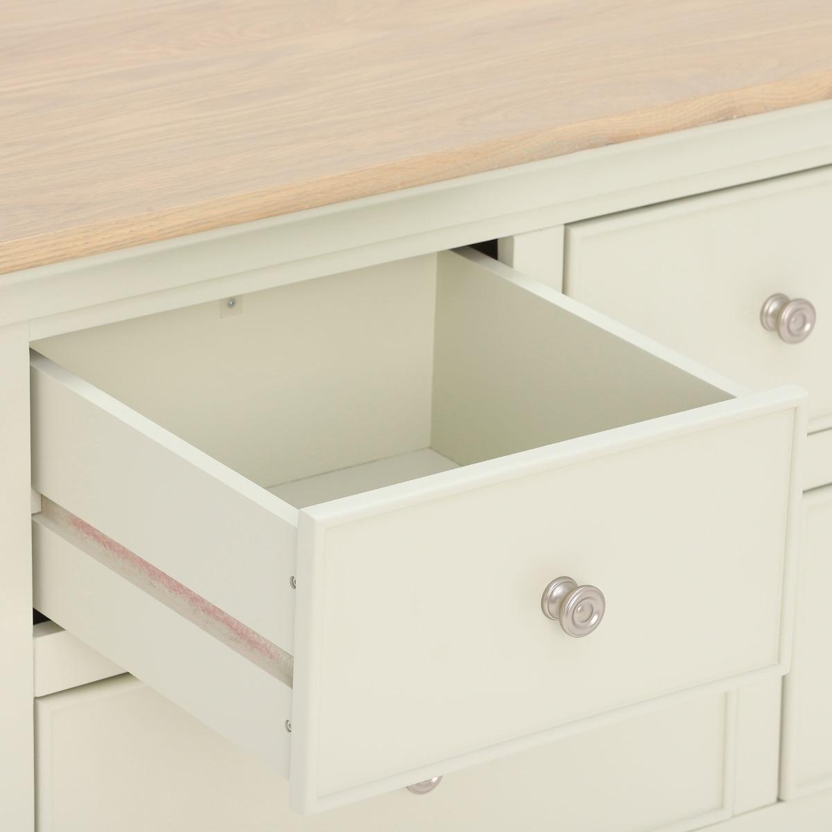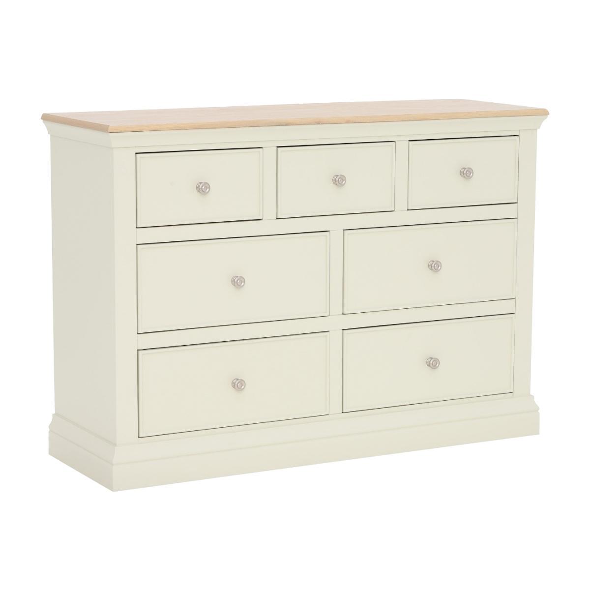 I really love this chest of drawers because it combines practical storage with a soft, understated look. The oak top adds warmth and texture, making it versatile for both traditional and Scandi-inspired interiors, while the ecru finish keeps things light and airy. It works particularly well in bedrooms or living rooms where you want functional storage without overwhelming the space. Styling tips include pairing it with textured table lamps or decorative trays on top to add interest, and balancing the neutral tones with colourful or patterned accessories elsewhere in the room. It’s a great, adaptable piece that can easily fit into various colour schemes and decor styles.