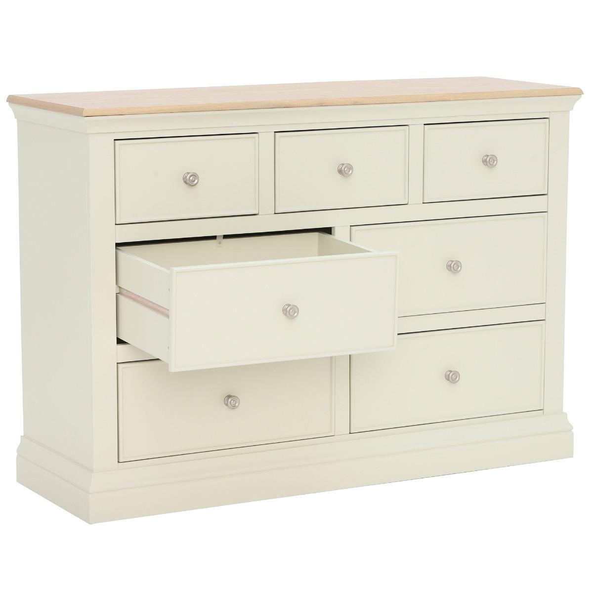 Design. Storage solution with a rustic edge. Inspired by the coast line, this simplistic piece breathes life into any bedroom and will look great in a range of interior schemes. Finished in an ecru painted body and washed oak top, the blend of natural materials and coloured wood creates a subtle beachy feel, while remaining modern and timeless. Each drawer provides and abundance of storage for personal belongings, with each fitted onto wooden runners for a sturdy slide. Small rounded silver handles to the face of each drawer makes for easy opening and closing. Pair with another item from the Staithes range for a coordinated look in your bedroom.
