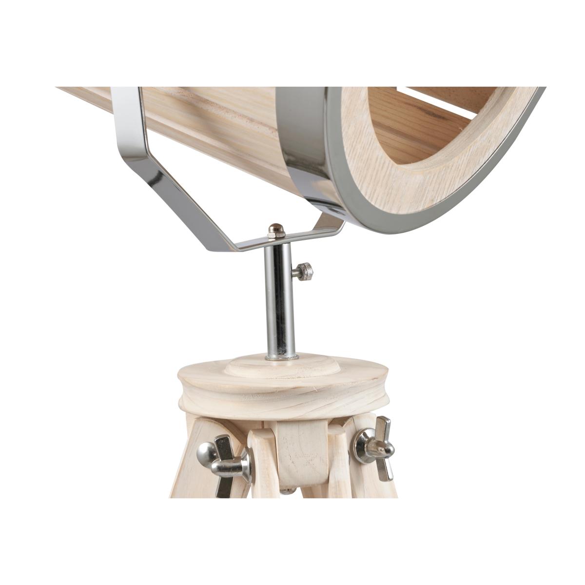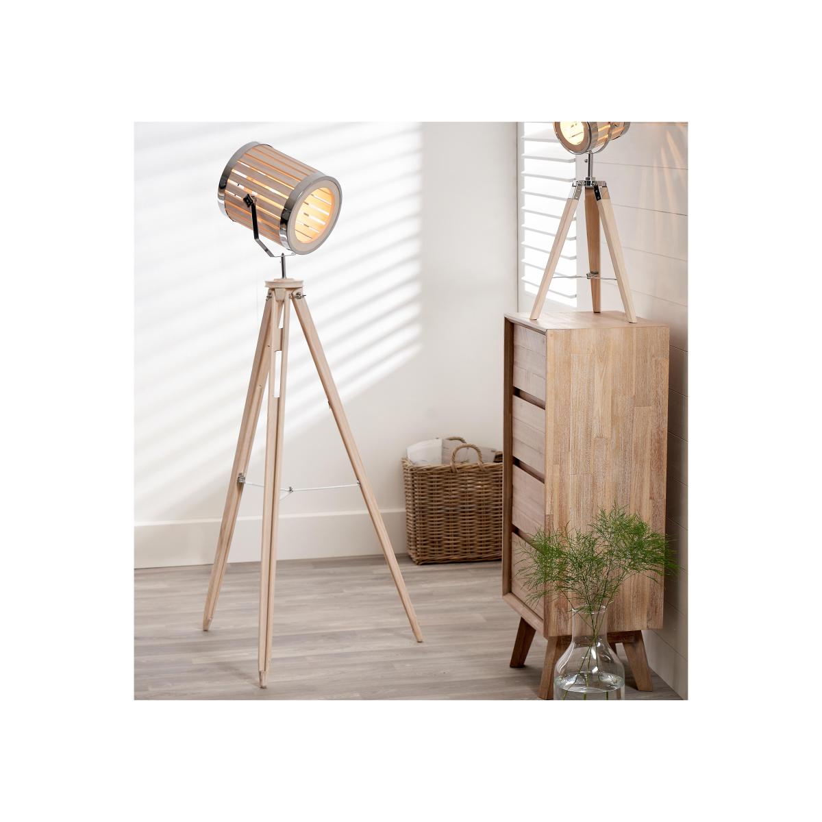 This beautifully crafted tripod floor lamp will always be a talking point with guests. Bold yet charmingly quirky, it has a high-end natural wood and metal finish. Why you'll love it. This stylish tripod floor lamp will definitely steal the show. Charming nautical style. Natural wood and metal finish. Slatted marine lamp head casts a lovely diffused light. This table lamp is part of the Furniture Village home accessories collection. What you need to know. Base is made of whitewashed pine. Shade is made of iron with a nickel finish. Requires 1 x ES/E27 GLS/40. W, not supplied. Supplied with a 3.4 m cable. Inline foot switch. Please always use the correct light bulb for this floor lamp to avoid overheating. Dimensions. Height: 158 cm (63 in). Depth: 70 cm (28 in). Width: 70 cm (28 in).
