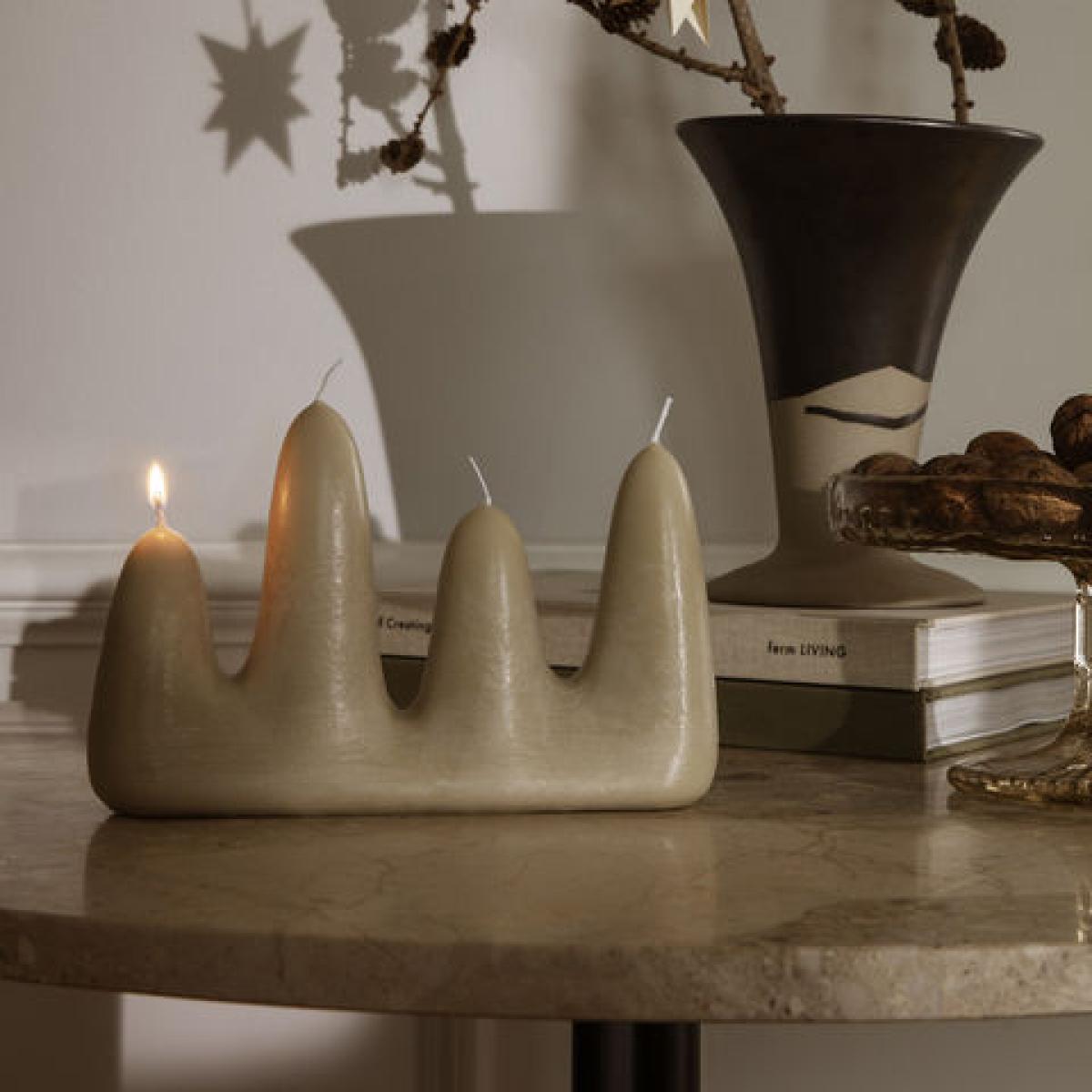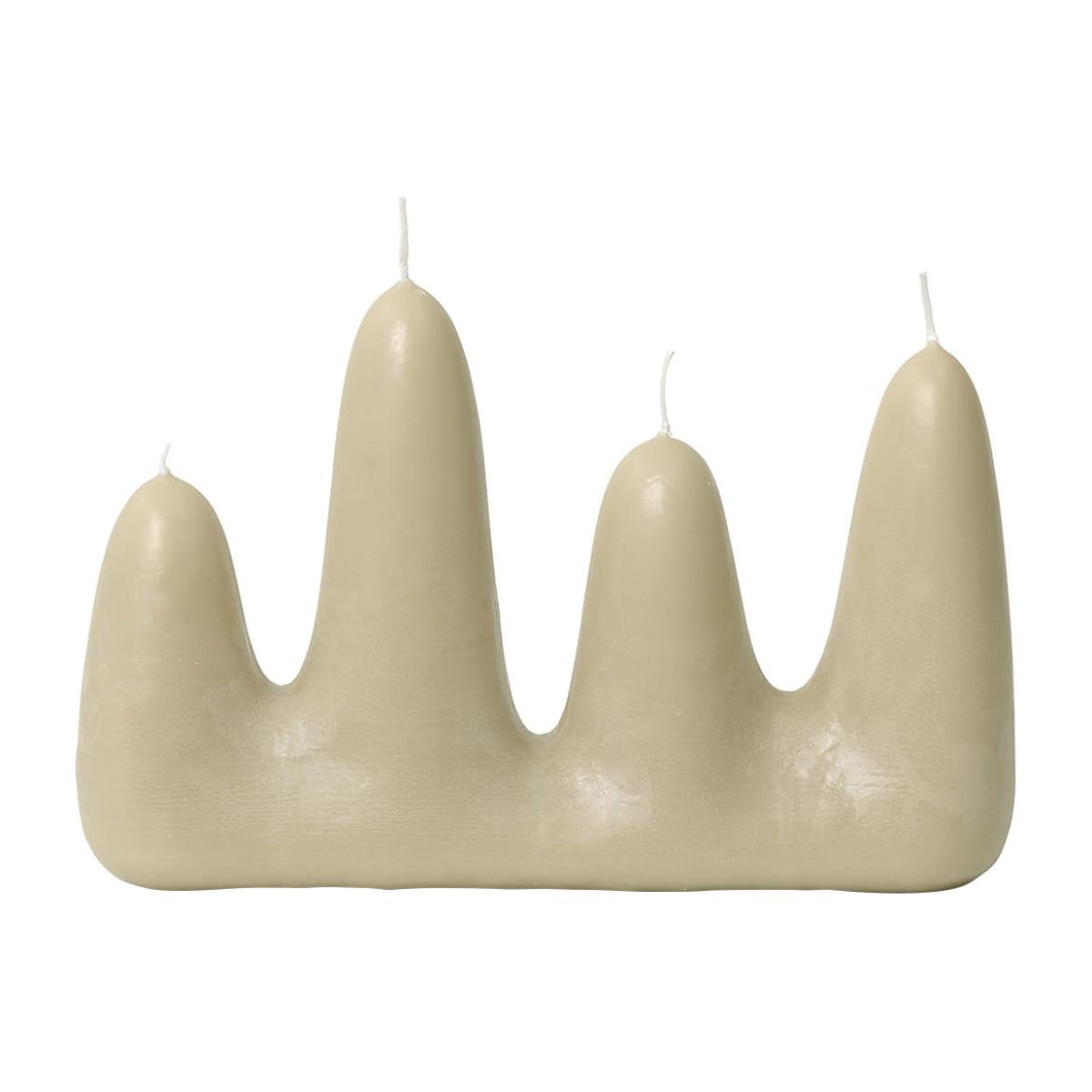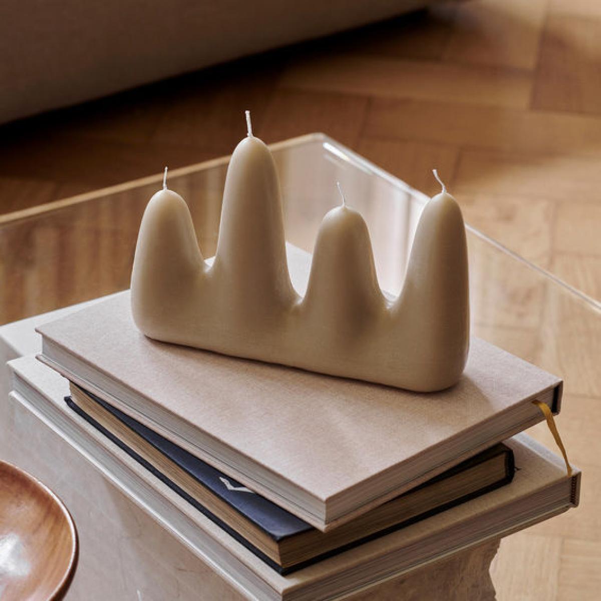 Evoking stalagmites or mountain peaks, the Scala candle has strange, curving and undulating forms. It features four wicks.