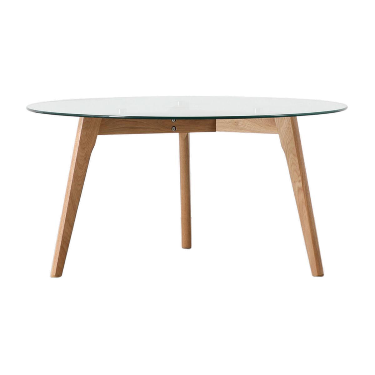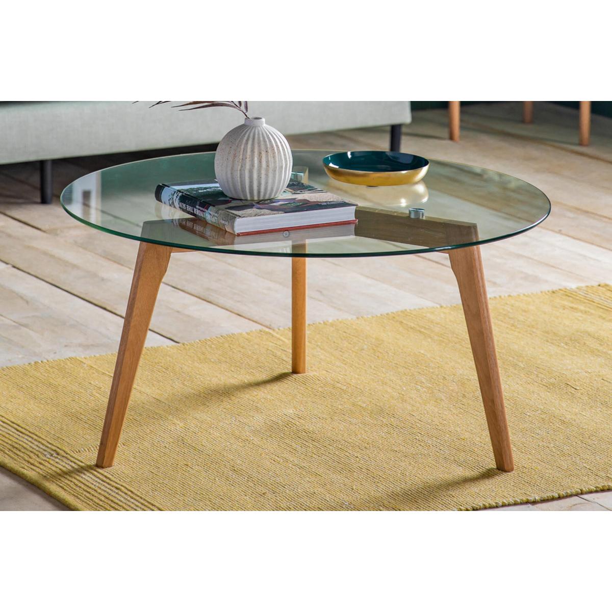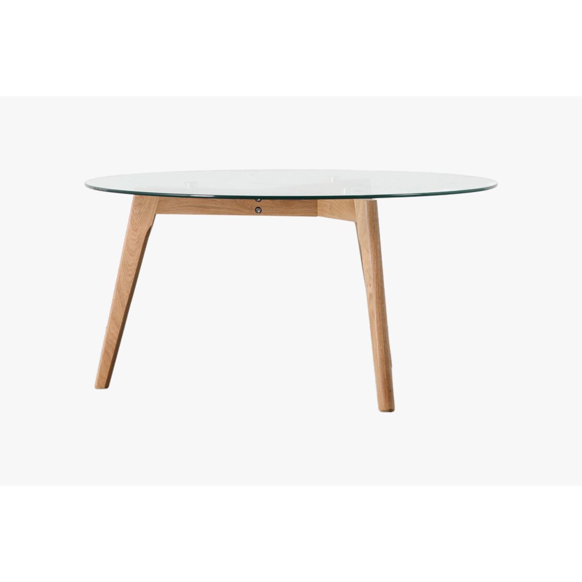 Block out your day and get ready to relax with the Stalwart Round Coffee Table, with a stylish lovely natural oak base supporting a sturdy tempered glass top, perfect for resting your coffee on and resting your mind!