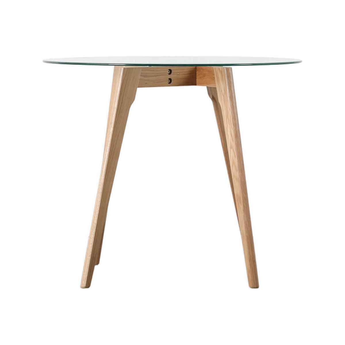 Perfect for gourmet meals or chilled catch-ups, the Stalwart Round Dining Table will have you feeling restful with its suave style, with a lovely natural oak leg base and a sturdy tempered glass top, grab your friends and share your time together!