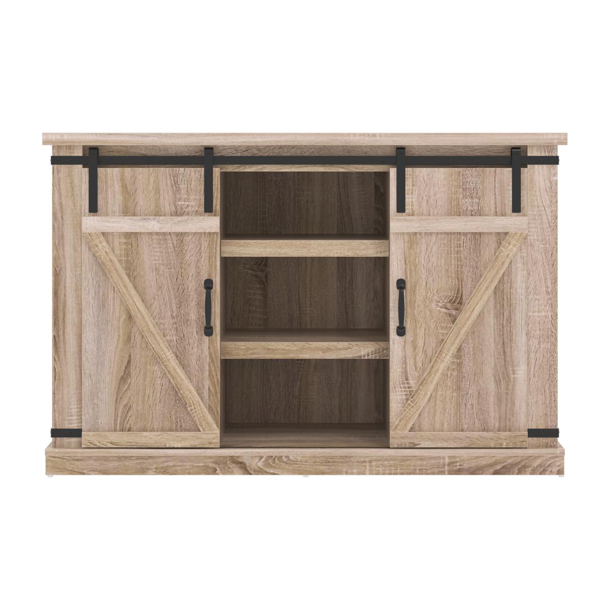 I love this sideboard for its versatile, rustic appeal and practical storage options. Its Sonoma Oak finish lends a warm, natural tone that works well in both contemporary and farmhouse-style interiors. It's particularly great in living rooms, dining areas, or even hallways where space is at a premium, thanks to its sliding barn-style doors that add character without sacrificing function. To style it effectively, consider pairing it with vintage-inspired accessories or modern metallic accents to create a balanced look. Practical tips include using the top surface for decorative displays or lighting to make it a focal point, while utilising the internal shelves for organising dinnerware, books, or baskets. Overall, it’s a stylish, functional piece that can adapt to a variety of interior themes.