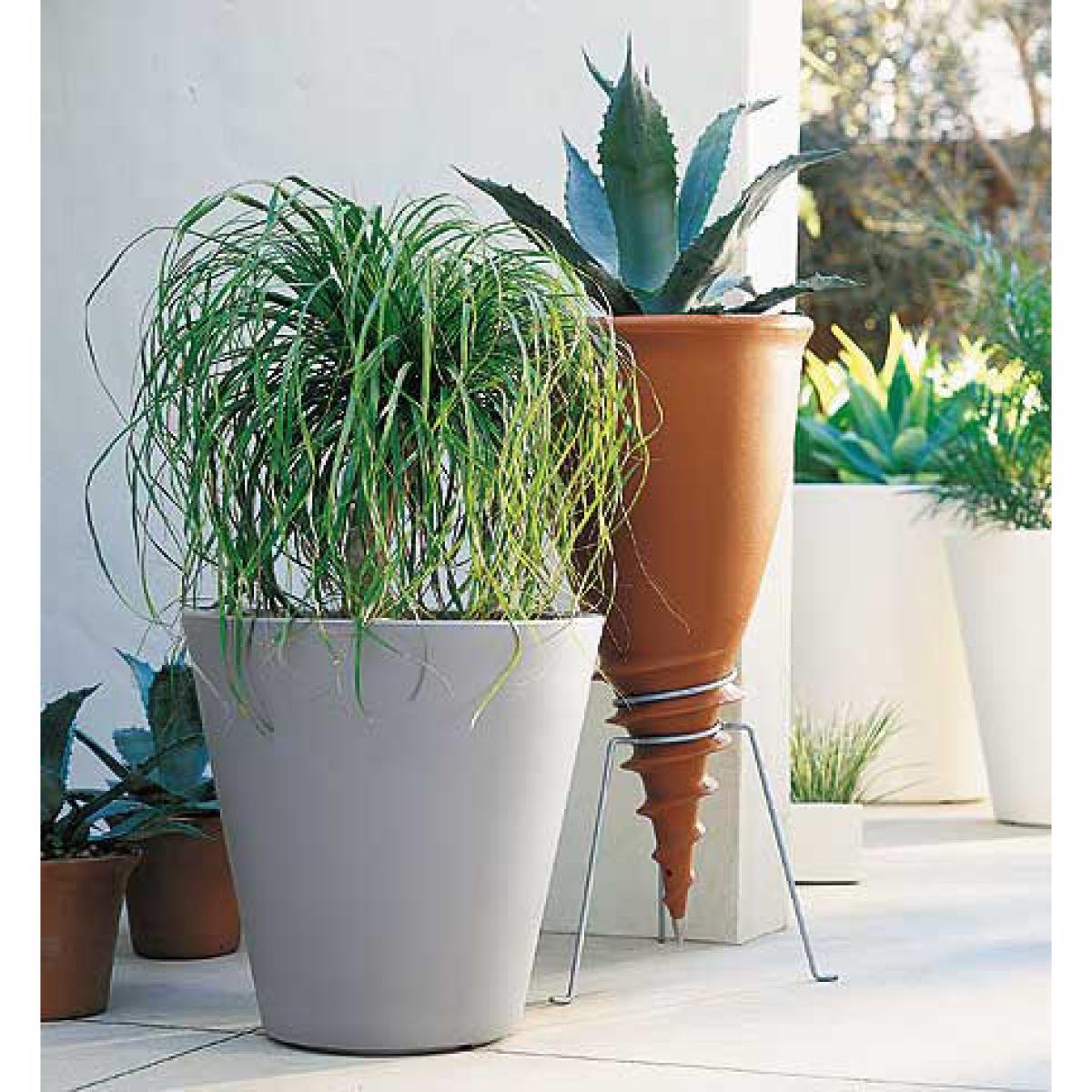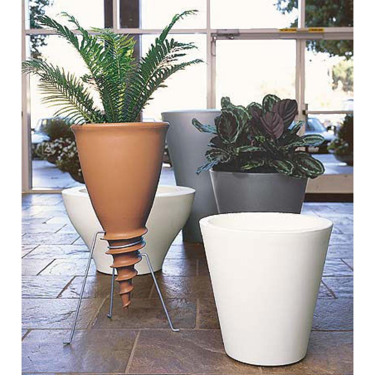 A very original concept, which revolutionizes the idea of the flowerpot of outside. Instead of being put, Santavase screws simply in the ground. Only or in squadron, it decorates your garden in a unexpected way and adapts itself to flat surfaces as to inclined planes. It becomes a continuation of the nature. You can also fix it to a foot foreseen for that purpose for an internal use.