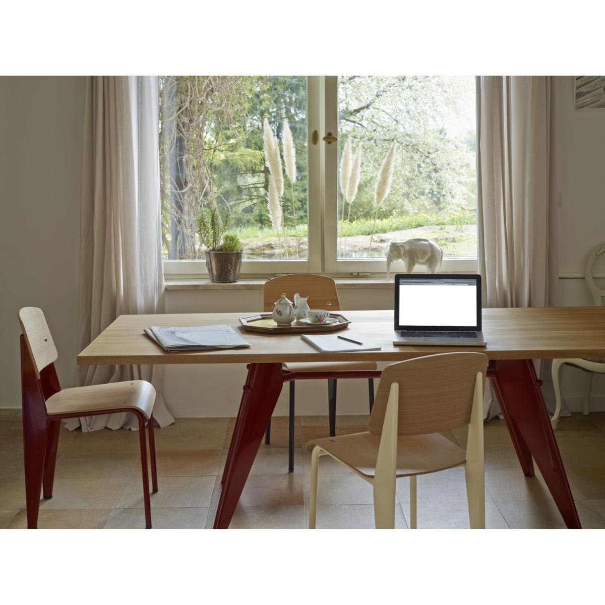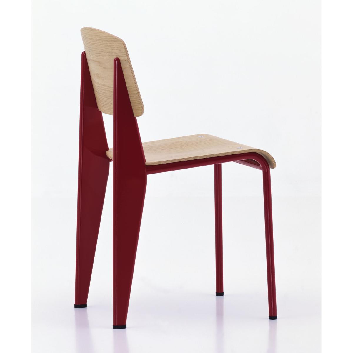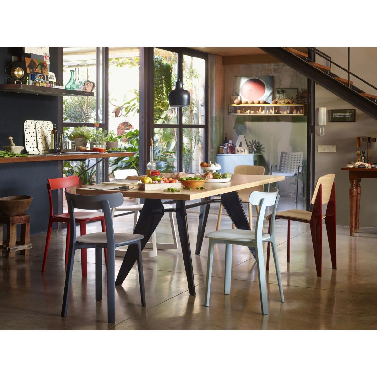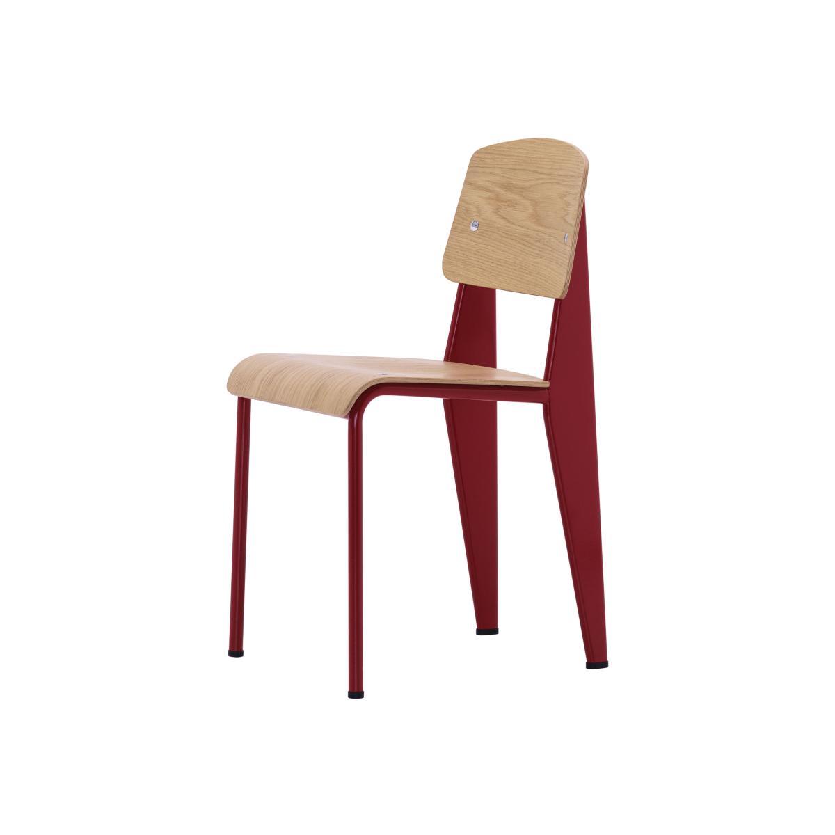 Treat yourself to an ORIGINAL iconic piece by Vitra. An original will always retain its value. An original will stay with you for your whole life and will outlive you, being passed on to the next generation. In 1934, Jean Prouvé, a French designer, architect and engineer, created the Standard chair. Entering the pantheon of design, the Standard chair is now part of the heritage of French design. Jean Prouvé started with a simple observation: on a chair, the weight of the body is carried mainly by the back legs, while the front legs are not used much. In 1934, he therefore designed a chair whose rear legs were reinforced, transmitting the load to the ground. While a steel tube is enough for the two less heavily loaded front legs, the back legs of the chair are made of large hollow bodies that transfer the load to the floor. The side view of the rear legs formed from a thin sheet of folded steel resembles an aeroplane wing which widens to the maximum at the seat frame - where the load is greatest. The upward narrowing of the hollow body of the seat frame also determines the angle and position of the backrest. The chair was introduced in 1934 as “Chair No. 4” and subsequently developed into different versions under the name “Standard”. This work is the perfect example of what’s at the centre of Jean Prouvé's many creations, namely an uncompromising orientation on the requirements of construction. Through its shape, the Standard Chair expresses Prouvé's intention to provide additional strength in the rear legs and in the transition between seat and back, where the human anatomy exerts the greatest load. Originally, the Standard chair was made in Jean Prouvé's own factory. Most of the time, the legs and frame were made of metal, while the seat and back were made of wood. There were also models made entirely of metal or, in particular during the war years when metal was scarce, entirely of wood. The model known today as the Standard Chair, manufactured by Vitra, combines a moulded plywood backrest with a lacquered sheet steel structure.