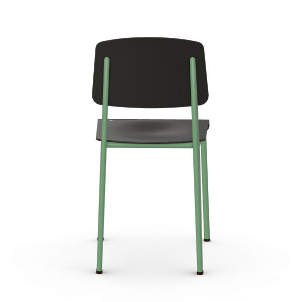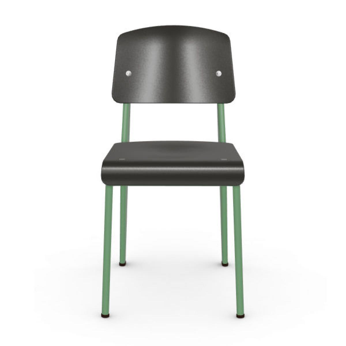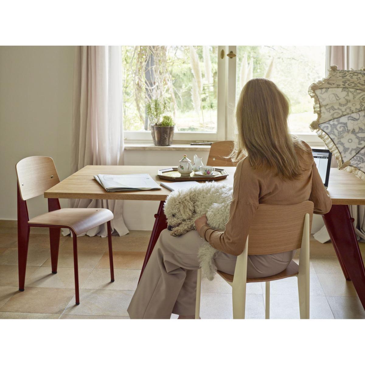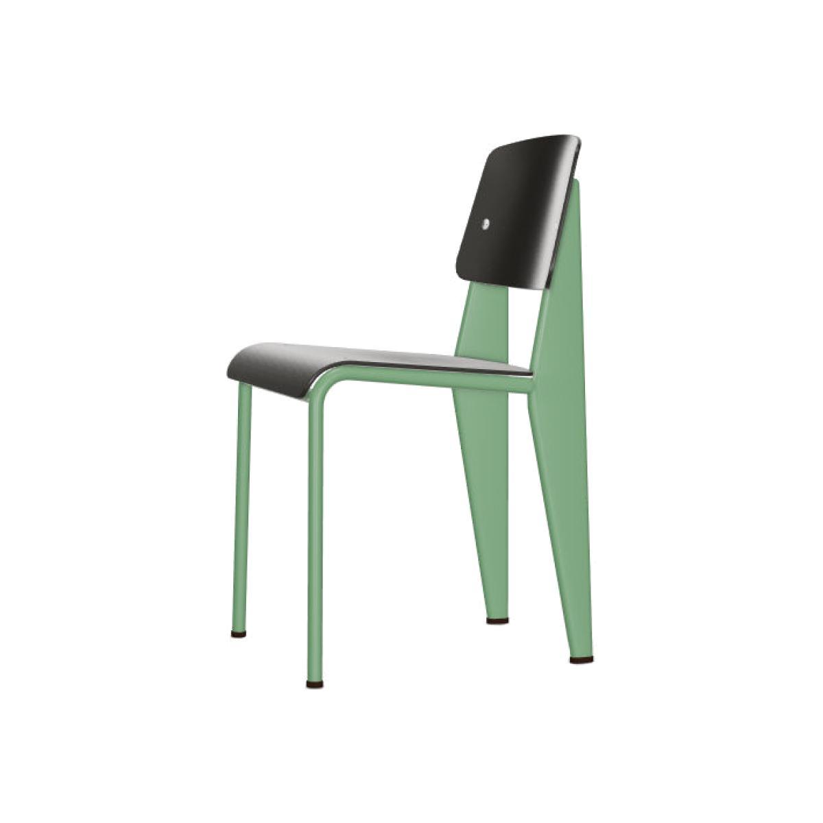 Treat yourself to an ORIGINAL iconic piece by Vitra. An original will always retain its value. An original will stay with you for your whole life and will outlive you, being passed on to the next generation. In 1934, Jean Prouvé, a French designer, architect and engineer, created the Standard chair. Entering the pantheon of design, the Standard chair is now part of the heritage of French design. Jean Prouvé started with a simple observation: on a chair, the weight of the body is carried mainly by the back legs, while the front legs are not used much. In 1934, he therefore designed a chair whose rear legs were reinforced, transmitting the load to the ground. While a steel tube is enough for the two less heavily loaded front legs, the back legs of the chair are made of large hollow bodies that transfer the load to the floor. The side view of the rear legs formed from a thin sheet of folded steel resembles an aeroplane wing which widens to the maximum at the seat frame - where the load is greatest. The upward narrowing of the hollow body of the seat frame also determines the angle and position of the backrest. The chair was introduced in 1934 as “Chair No. 4” and subsequently developed into different versions under the name “Standard”. This work is the perfect example of what’s at the centre of Jean Prouvé's many creations, namely an uncompromising orientation on the requirements of construction. Through its shape, the Standard Chair expresses Prouvé's intention to provide additional strength in the rear legs and in the transition between seat and back, where the human anatomy exerts the greatest load. Originally, the Standard chair was made in Jean Prouvé's own factory. Most of the time, the legs and frame were made of metal, while the seat and back were made of wood. There were also models made entirely of metal or, in particular during the war years when metal was scarce, entirely of wood. The model known today as the Standard Chair is available in three versions: the classic version with a wooden seat and back and metal legs, the Standard SP model in plastic and metal and the All Wood Chair in veneer and solid wood. The Standard SP (Plastic Seat) model finds its place in our time without any modification of its shape: a seat and backrest in robust synthetic material, in a range of skilfully harmonised colours, give the Standard SP a contemporary charm. The durable matt finish of the epoxy-finished legs matches the plastic surfaces of the seat.