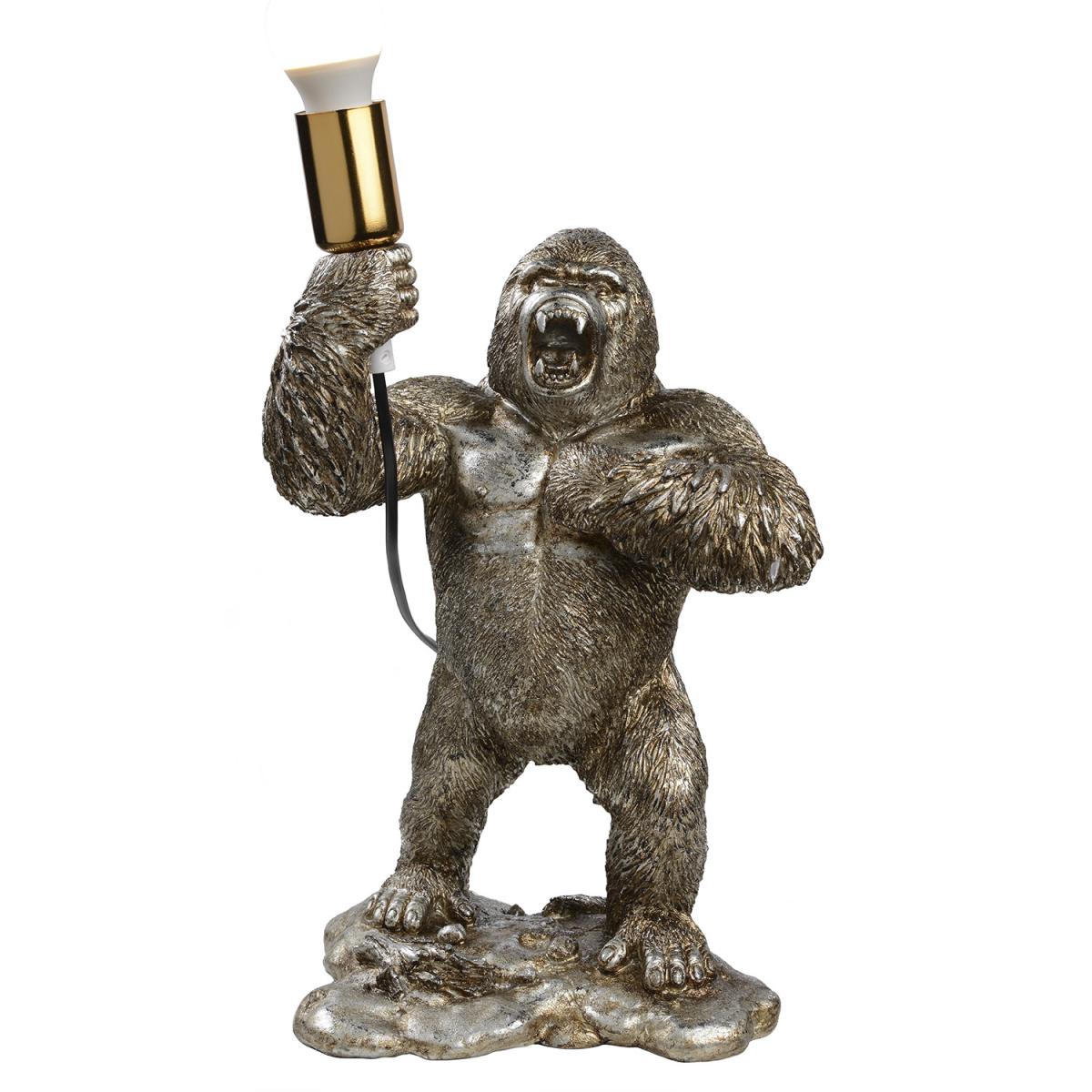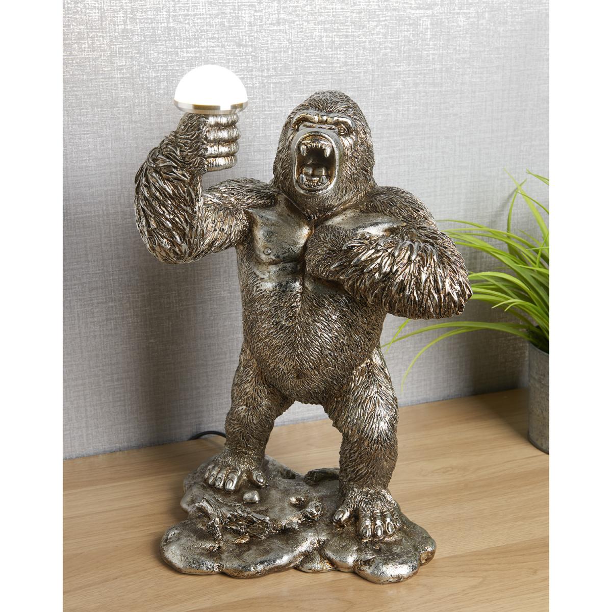 A super fun and unique lighting feature, the Standing Gorilla Table Lamp is sure to be a talking point among guests. Clutching an LED in one hand and beating his chest with the other, this territorial gorilla light is finished with a metal effect and will create an eye-catching feature in any room.