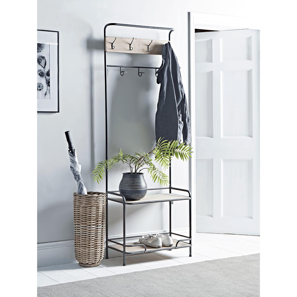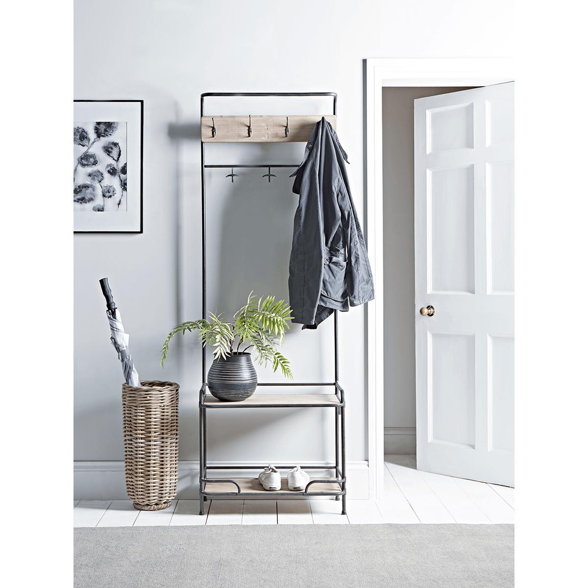I love this hall stand because of its clean, minimalist design that seamlessly fits into a variety of interiors, from contemporary to Scandinavian-inspired spaces. Its slim profile makes it perfect for narrow hallways or entryways where space is limited, while the combination of hooks and shelves offers practical storage for everyday essentials like coats, bags, and keys. Styling tips include adding a small tray on the lower shelf for post or small accessories, or placing a decorative vase or plant on the top shelf to inject some personality. This stand works especially well in light, neutral-coloured interiors, but it could also serve as a contrast piece in more colourful schemes, adding functionality without compromising style.