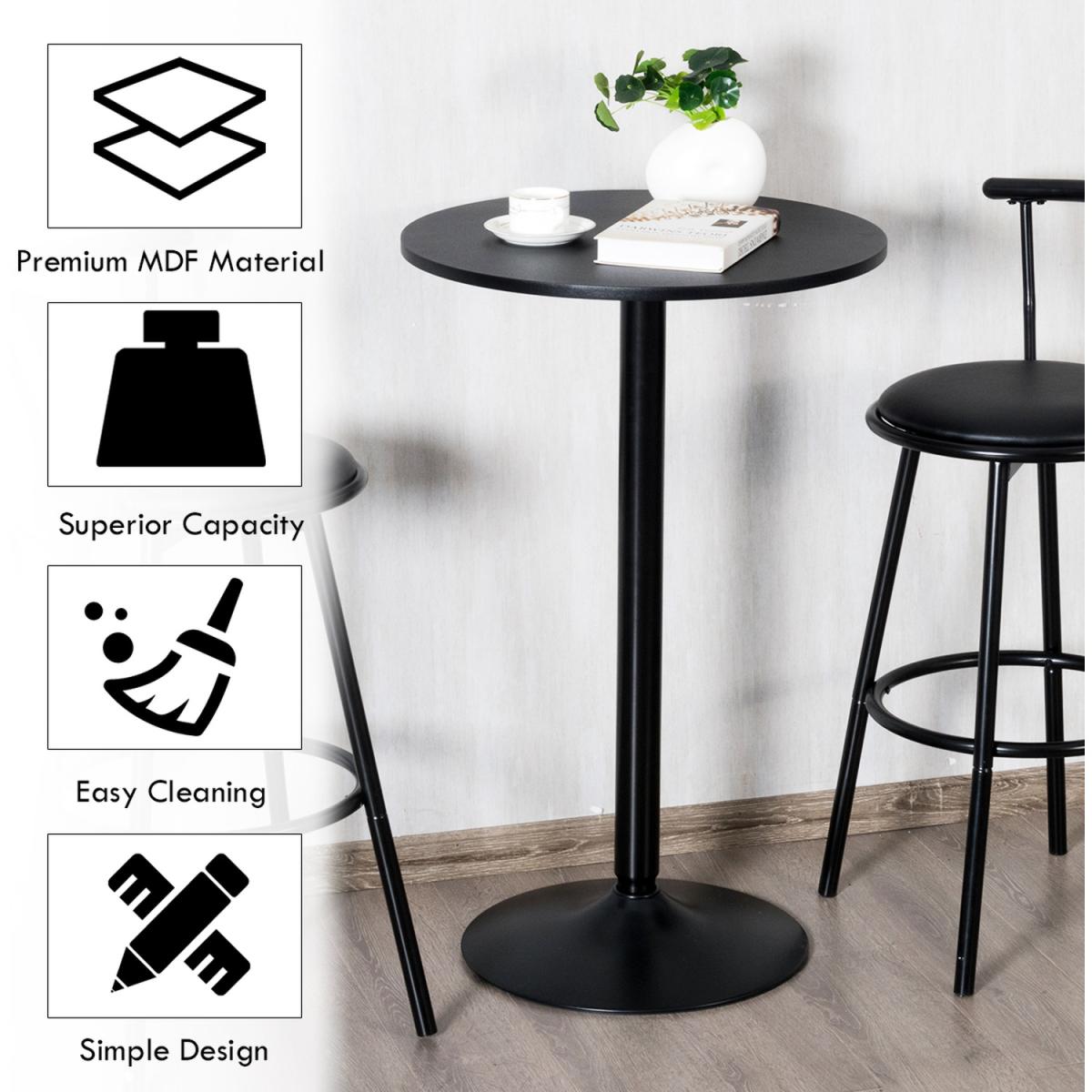 Whether you're a bar owner or a private experimenter, this is a bar table you can't miss. This round bar table is made from MDF and metal base stable support display. Height of this bar table is 101cm, so you don't have to worry about the height drop. The overall waterproof design allows you not to worry about difficult cleaning. The base that prevents rusting will not occupy too much area, and make the table look more noble and elegant. The anti-slip ring at the bottom can catch the ground. You can use it in large quantities at your bar or at your wedding. You can also buy it alone to decorate your living room or balcony. I hope our Pub table will bring you a new experience and enjoy your life to the fullest.