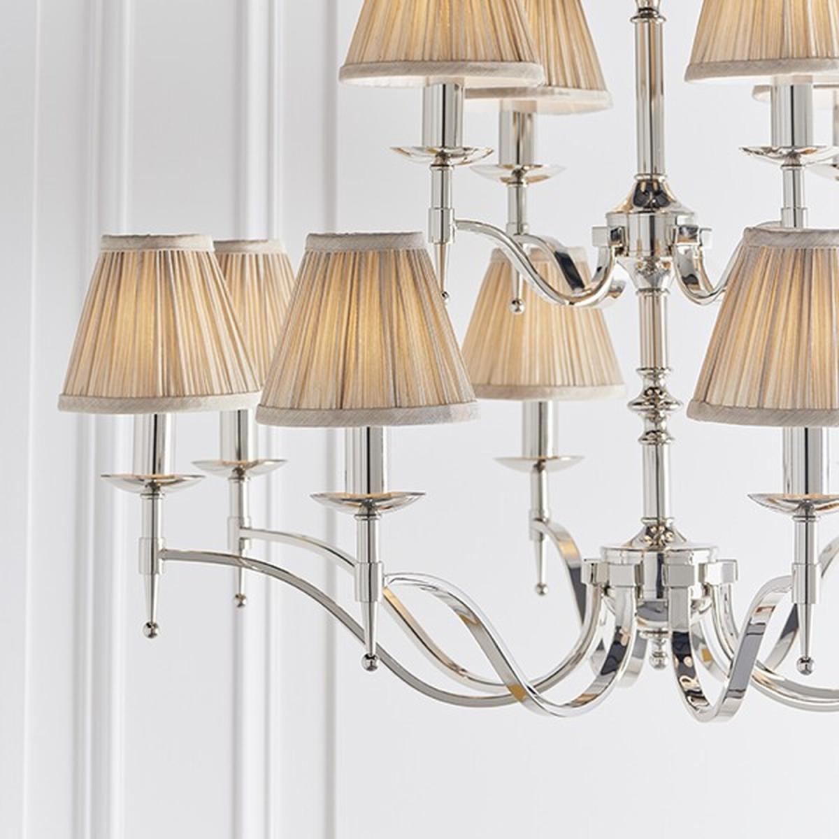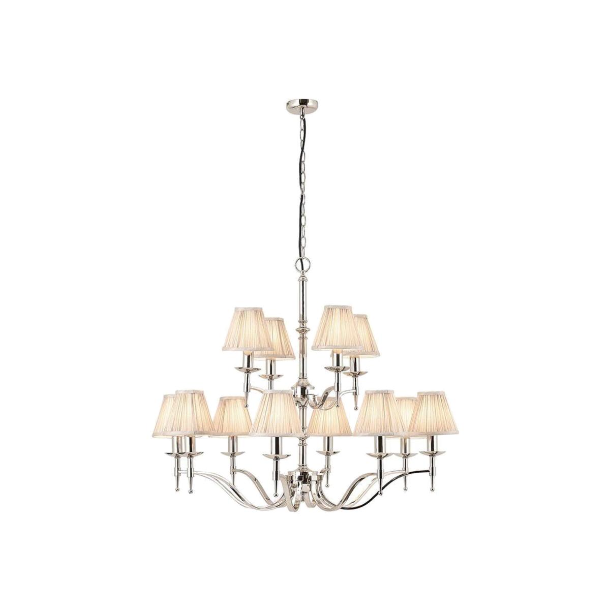 Stanford 12 Light Multi Arm Chandelier Polished Nickel Plate Finish, E14 - Polished Nickel Plate