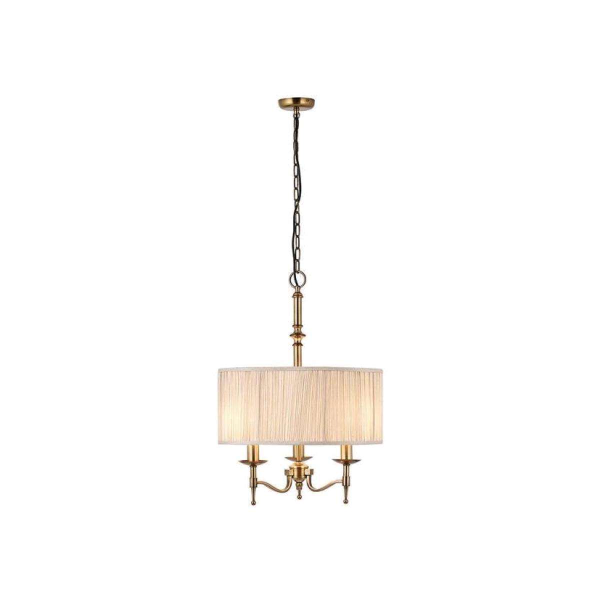 This elegant three light pendant from the antique brass range is an impressive fitting. Finished in antique brass with angular arms giving it a classical twist on its contemporary styling. Looks especially effective when teamed with decorative filament candle lamps. Available in a choice of sizes and fittings. Matching items available.