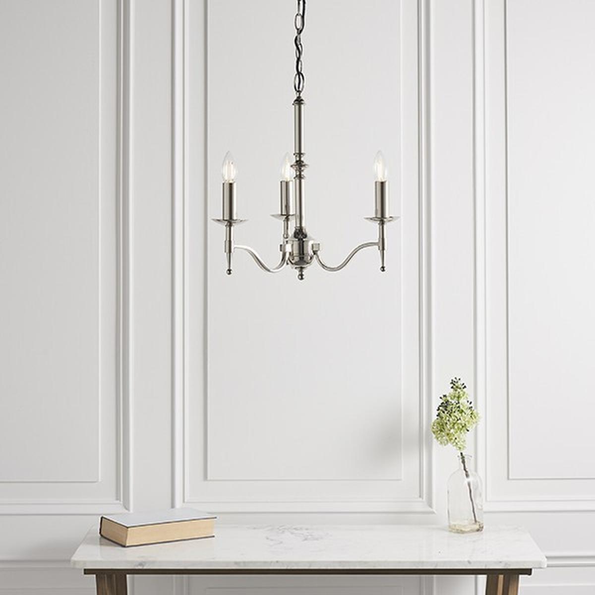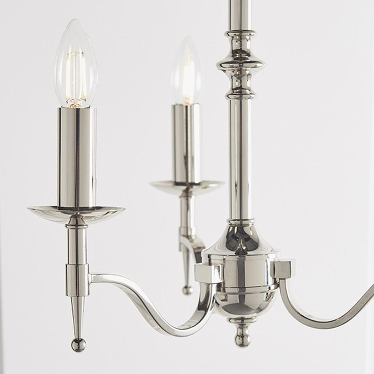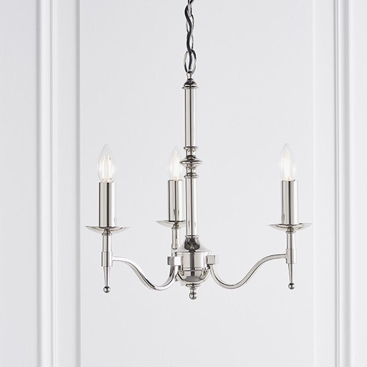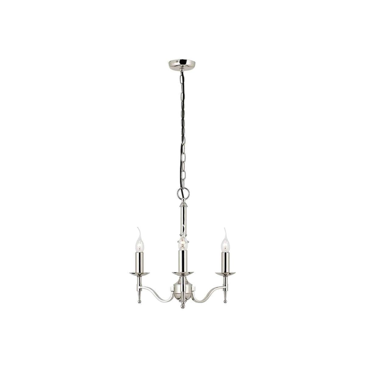 Stanford 3 Light Multi Arm Ceiling Pendant Chandelier Polished Nickel, E14 - Polished Nickel Plate / 155cm / 43cm