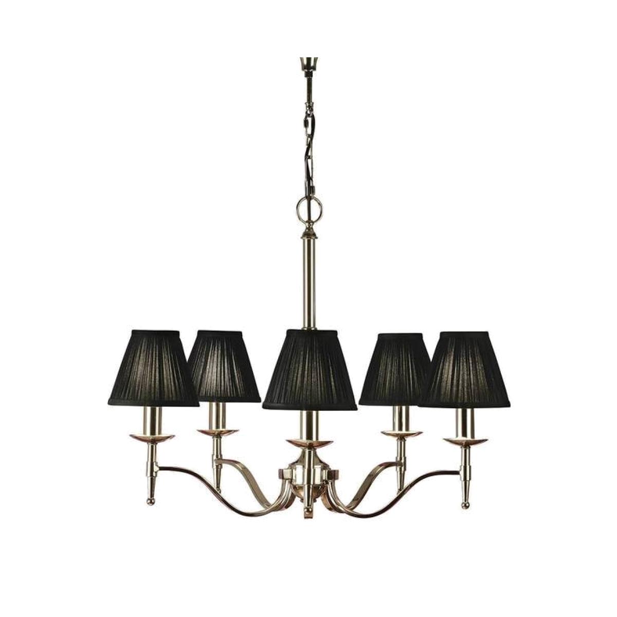I love the Stanford five-light chandelier for its sleek polished nickel finish combined with timeless black shades, making it an adaptable piece that can elevate various interiors. It works especially well in traditional or transitional spaces, such as dining rooms or living areas, where it can serve as a statement without overwhelming the room. When styling, consider pairing it with understated, modern tableware or decor to let the fixture stand out, and ensure the ceiling height is sufficient to maximise its visual impact. For a more contemporary look, it pairs nicely with minimalist or monochrome schemes, while in classic settings, it adds a touch of sophistication. Practical tip: use dimmable bulbs to control the ambience and highlight the chandelier’s elegant silhouette.