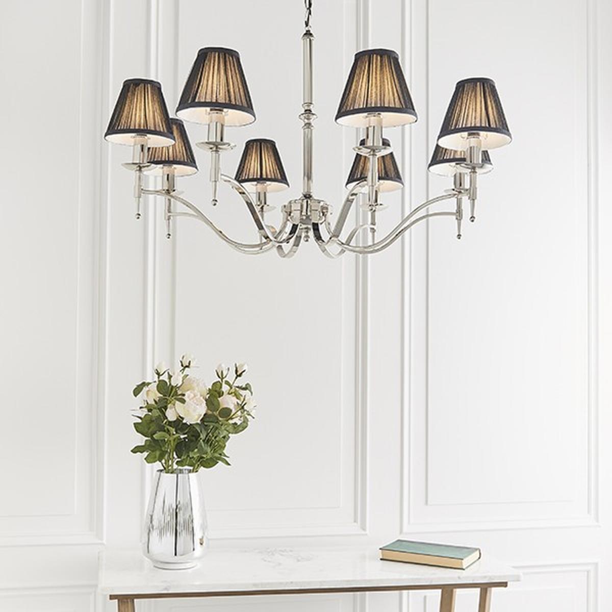 Stanford 8 Light Multi Arm Chandelier Polished Nickel Plate Finish, E14 - Polished Nickel Plate