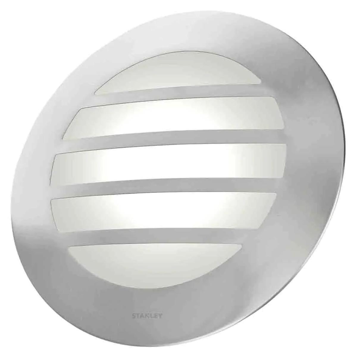 I love this outdoor light for its sleek, modern design and versatile appeal. Its circular form with slats adds a clean, contemporary touch while allowing light to cast interesting shadows, making it perfect for both minimalist and industrial exteriors. It works well in porch areas, garden walls, or underneath covered outdoor spaces. To style it effectively, consider pairing it with other steel or muted-tone fixtures for a cohesive look, and keep the surrounding landscape simple to let the light feature stand out. Practical tip: install it at eye level for general lighting or higher for ambient glow, ensuring it complements the overall outdoor aesthetic.