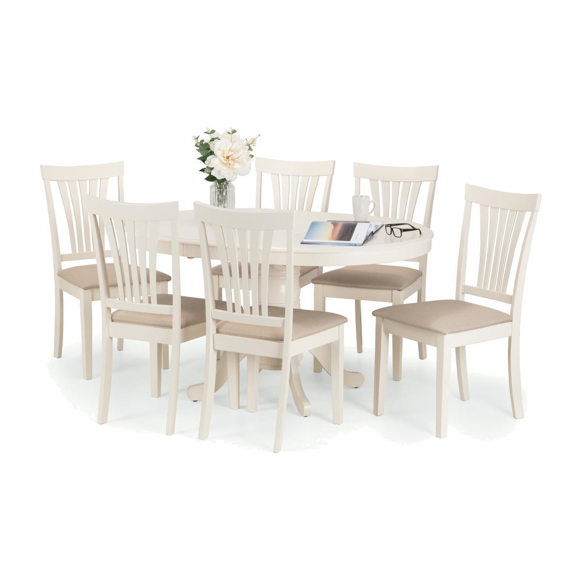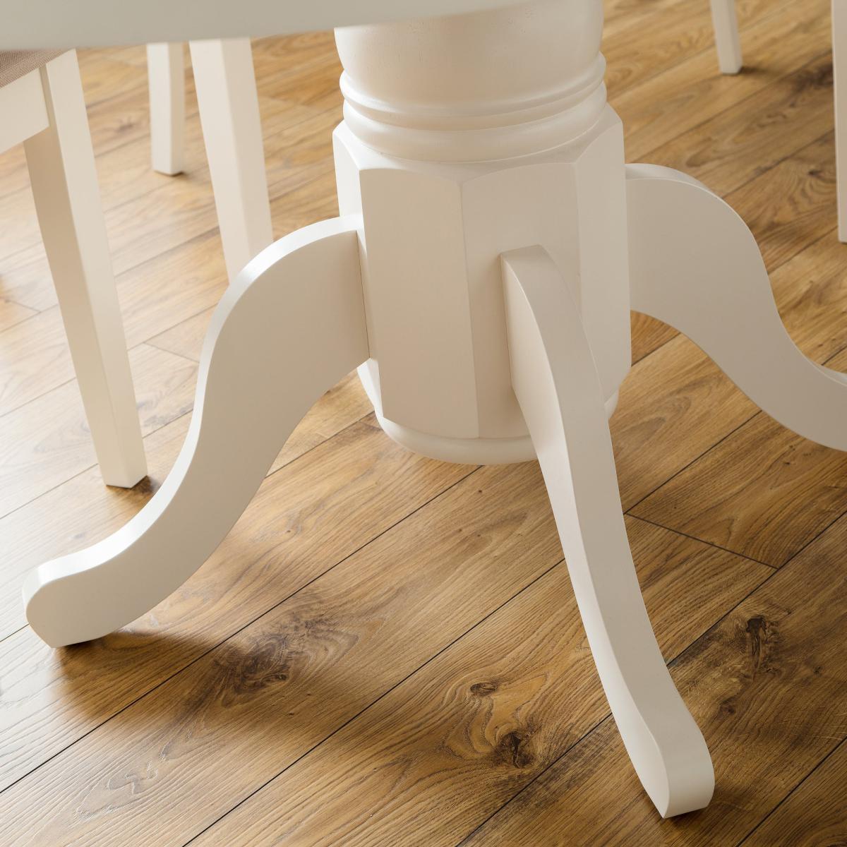 In a durable satin ivory lacquered finish, this dining set is perfect for family dining and special occasions. This table extends from 100cm to 138cm. This et includes 4 plush linen effect padded seats, that provide you with extra comfort.