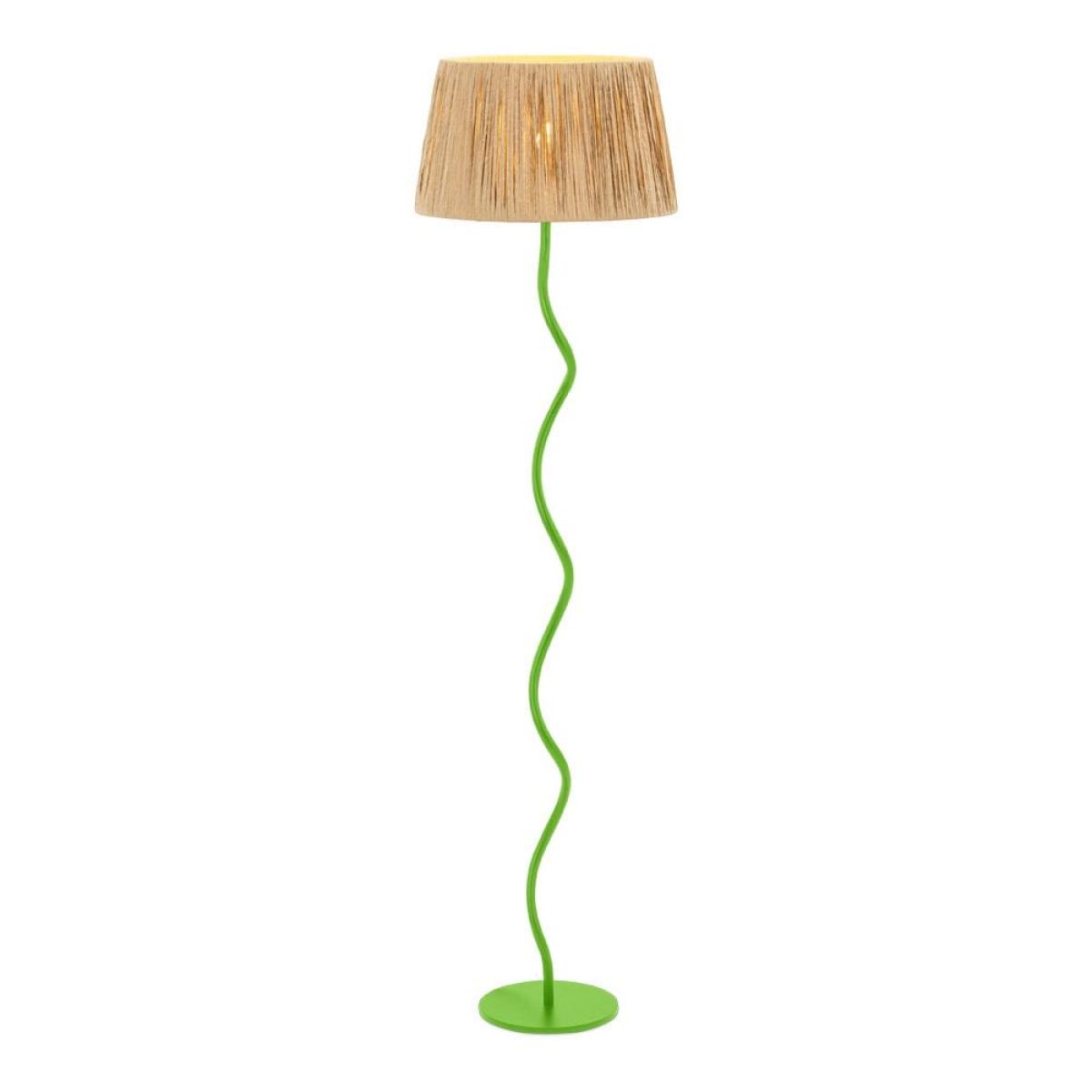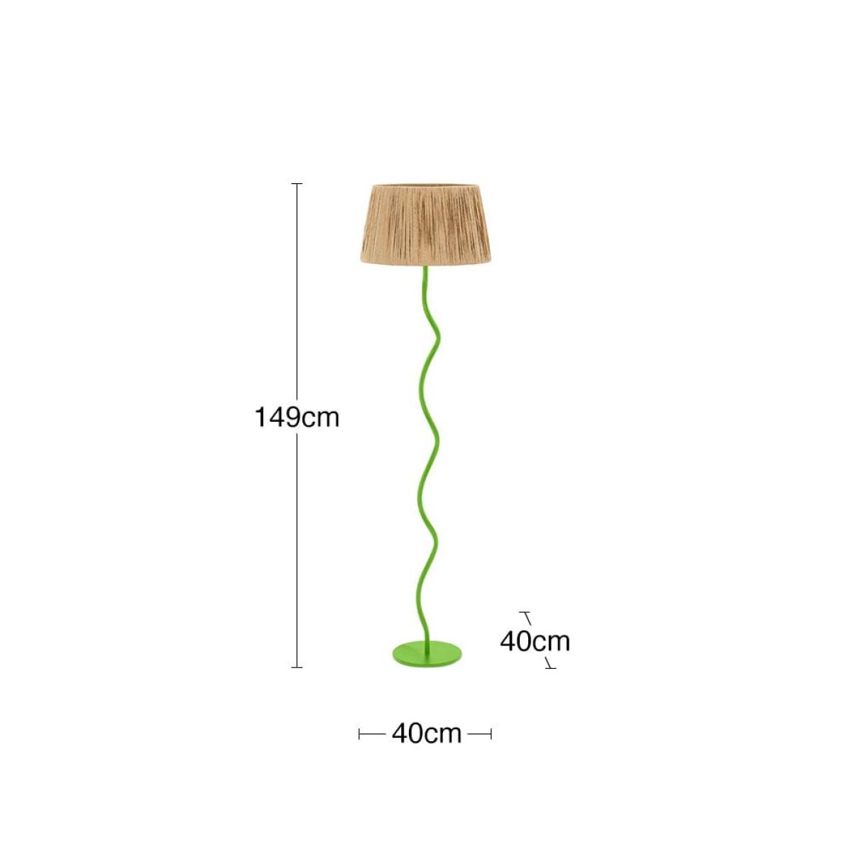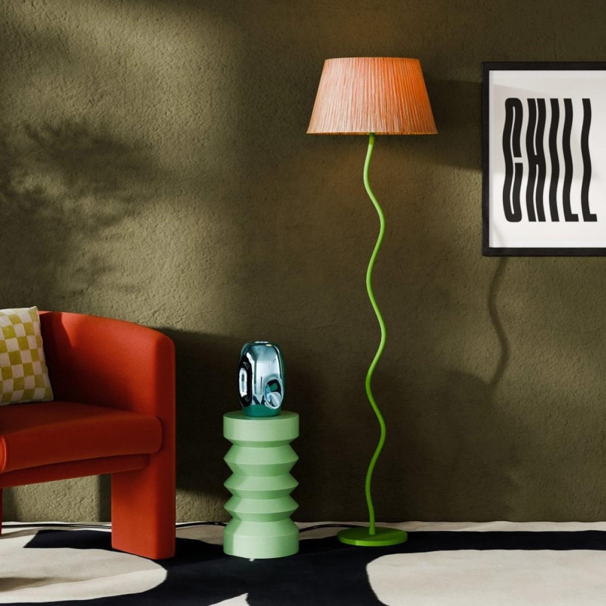 I love this stand-out lamp for adding a touch of playful elegance to a variety of interiors. Its Raffia shade offers a natural, textured look that works beautifully in boho, coastal, or contemporary schemes, bringing a soft, warm glow to living rooms or bedrooms. The green wavy stem adds a pop of colour and visual interest, making it a versatile statement piece. Practical styling tips include positioning it near a cosy reading nook or side table, where its unique design can be fully appreciated. To keep the look cohesive, pair it with natural fibres, rattan furniture, or other textured accessories to enhance the organic feel.