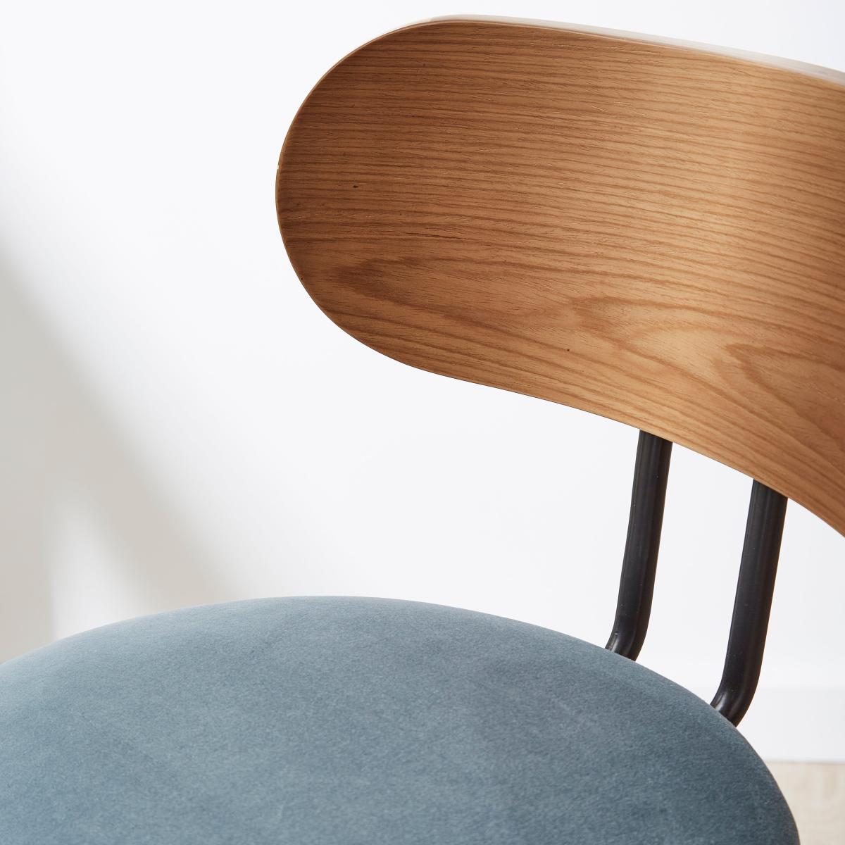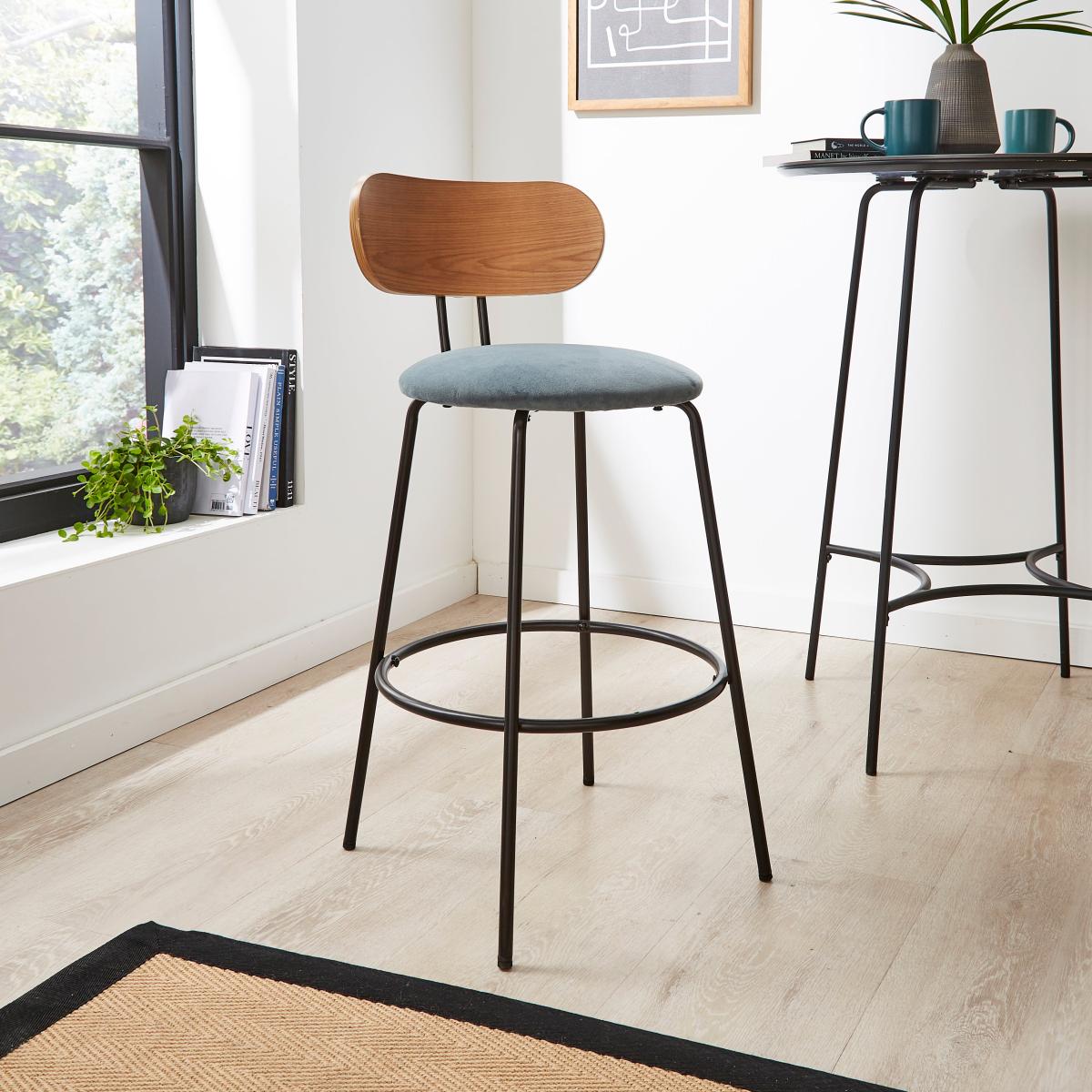 Looking for something a little different? Our stylish bar stool has all the elements you need for added comfort and style. Featuring a wood effect backrest and soft velvet upholstered seat, this stool is perfect for relaxing after a long day of work.