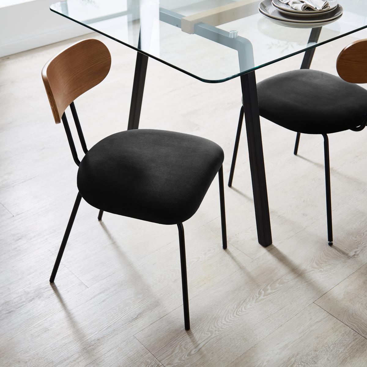 I really like the Stannis dining chair for its sleek, modern look and versatile colour palette. The Velvet Black and Brown finish makes it a great choice for both contemporary and mid-century interiors, working well against neutral tones or bared wooden dining tables. It’s a practical piece due to its cosy upholstery, which adds comfort without sacrificing style. For styling tips, consider pairing these chairs with a light wooden or glass table to highlight their elegance, and accessorise with minimalistic tableware or botanical centrepieces to emphasise their clean lines. They’re perfect for a minimalist or Scandi-inspired space, but can also add a touch of sophistication to more eclectic interiors.